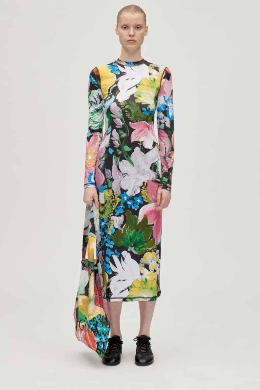 Model: Sg-aw25-d074-2244 – 2244 Stocking Jersey, Pullover Long Sleeve Midi Dress