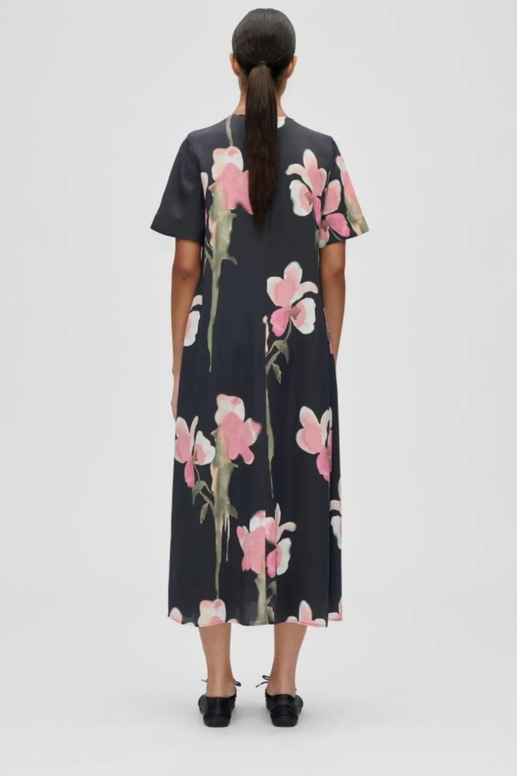Model: Sg-aw25-d164-2263 – 2263 Dry Viscose, Flowy Short Sleeve Midi Dress