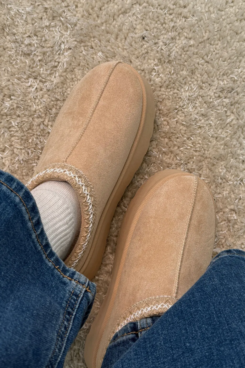 Hjemmesko fra Bloom i beige, lavet af syntetisk materiale. Slipperen har en kilehæl og et design uden lukning.