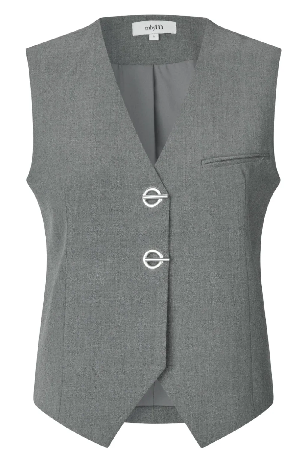 Vest fra MbyM i grå farve med meleret mønster. Vesten kan bæres til både formelle anledninger, hverdagsbrug og festlige lejligheder.