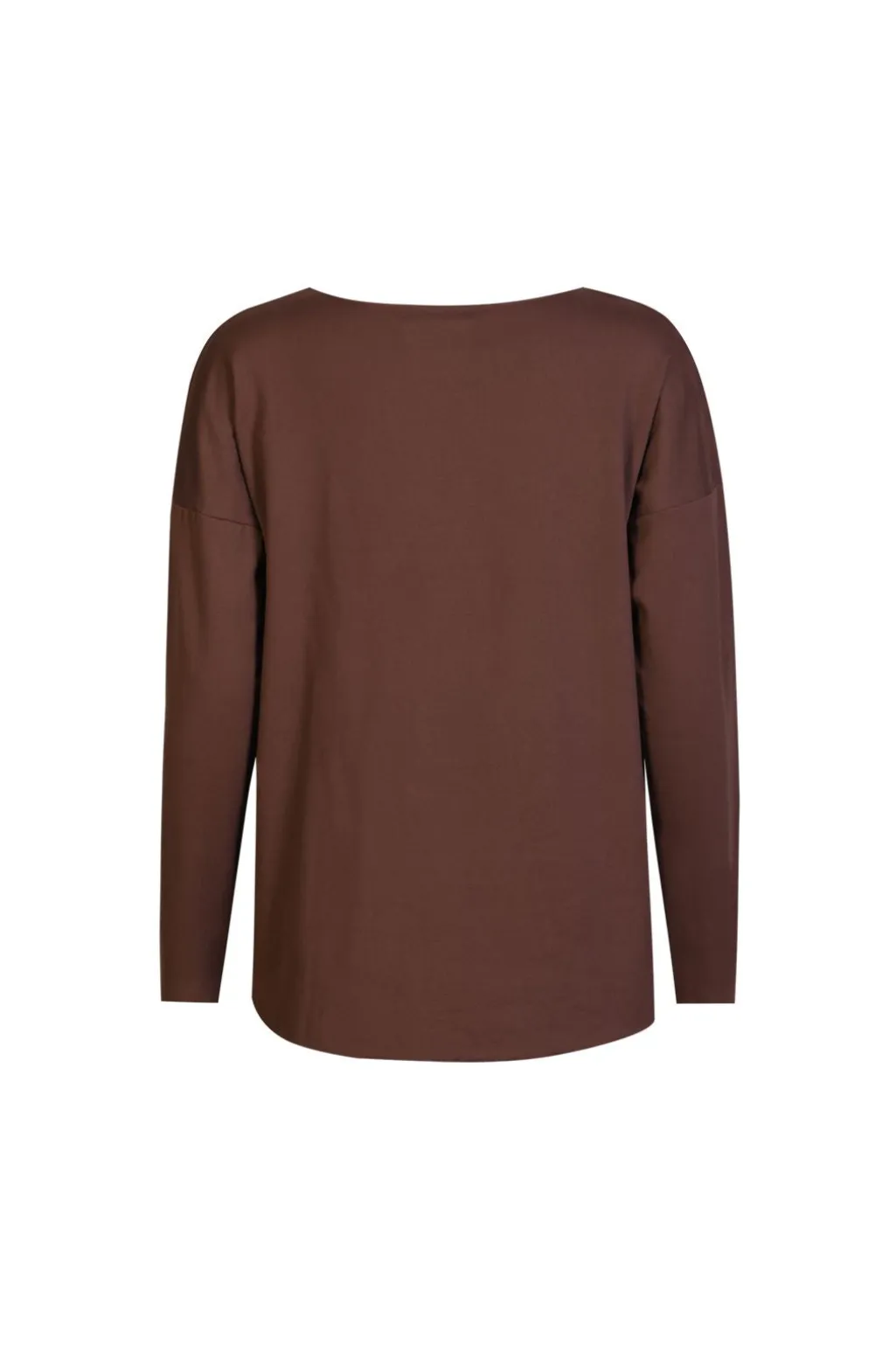 Brun langærmet top fra Liberte, lavet i superblød fleecekvalitet. Toppen har en rund halsudskæring og en løs pasform.