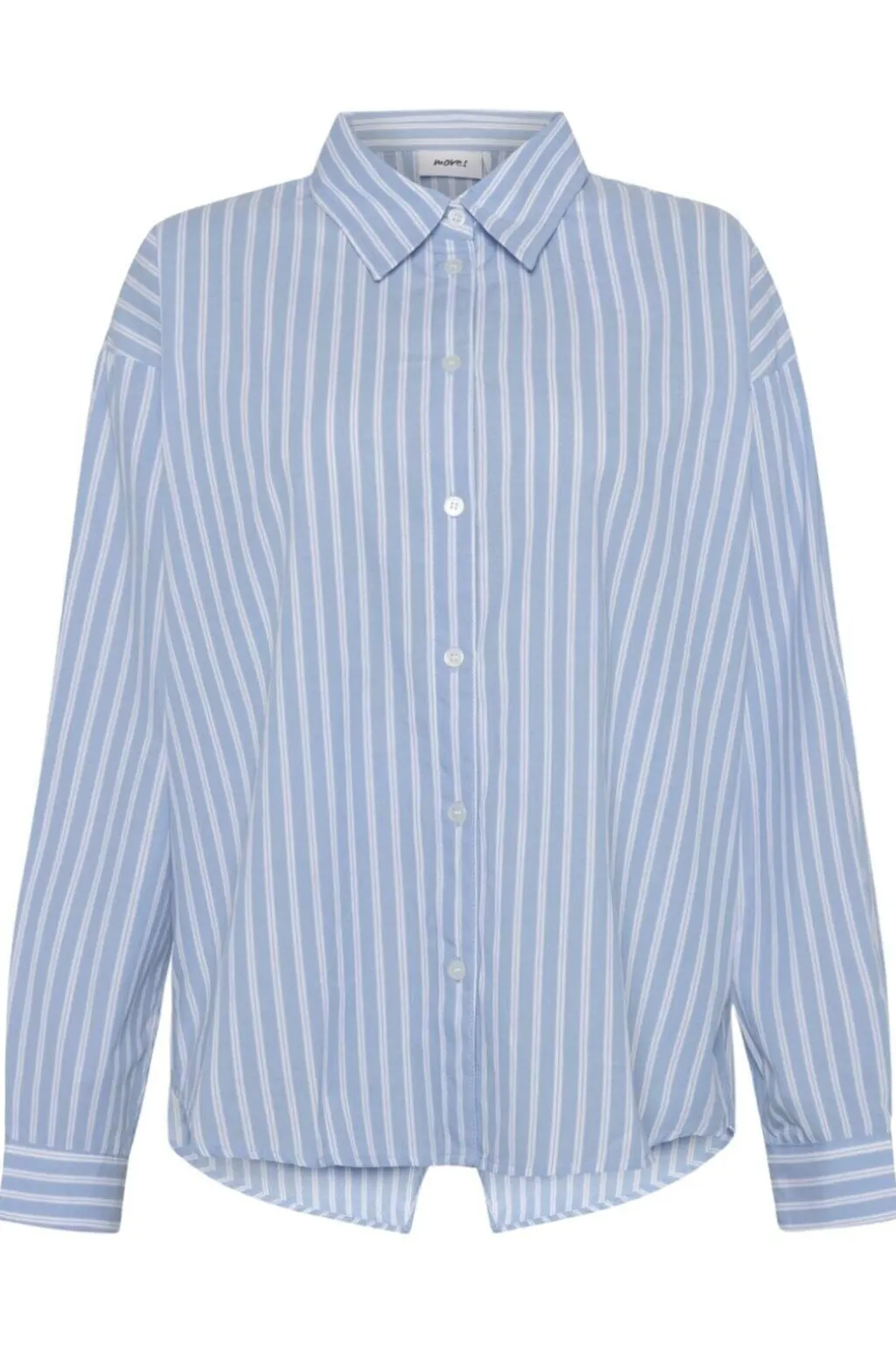Lyseblå stribet skjorte fra Moves By Minimum med hvide striber. Skjorten har lange ærmer og en klassisk skjortekrave med knaplukning foran.