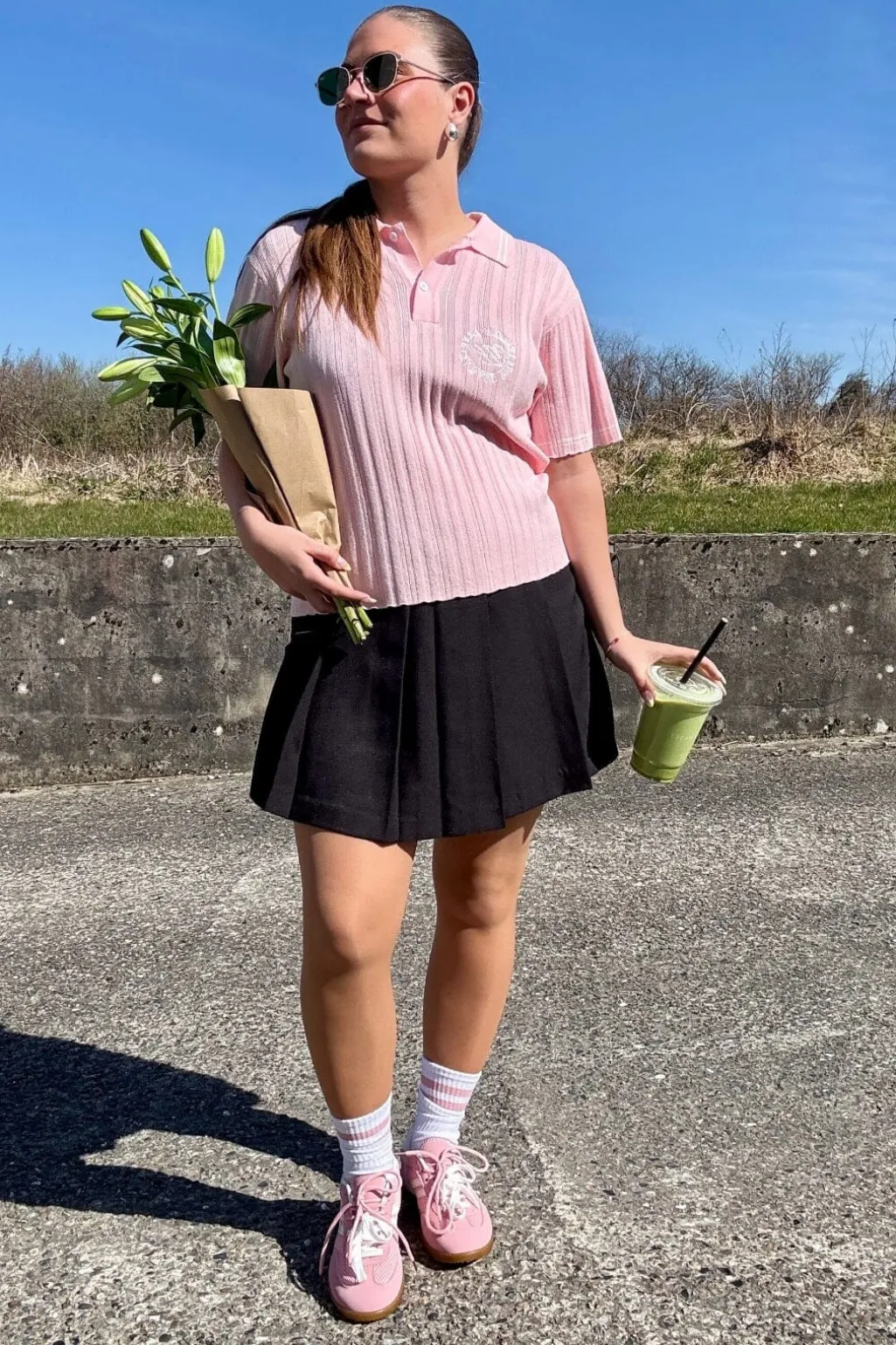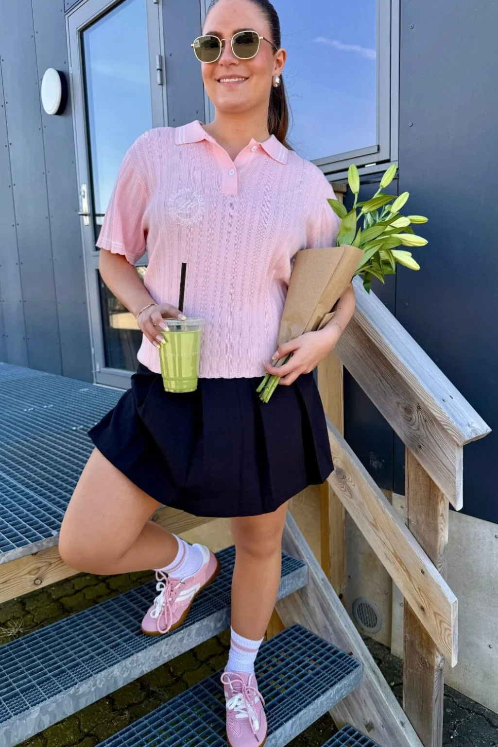 Lyserød polo fra Yellow Lane i ribstrikket design. Den har en klassisk polokrave med knaplukning og hvide kontraststriber på krave og ærmer. Det broderede klublogo på forsiden giver poloen et sporty præg.