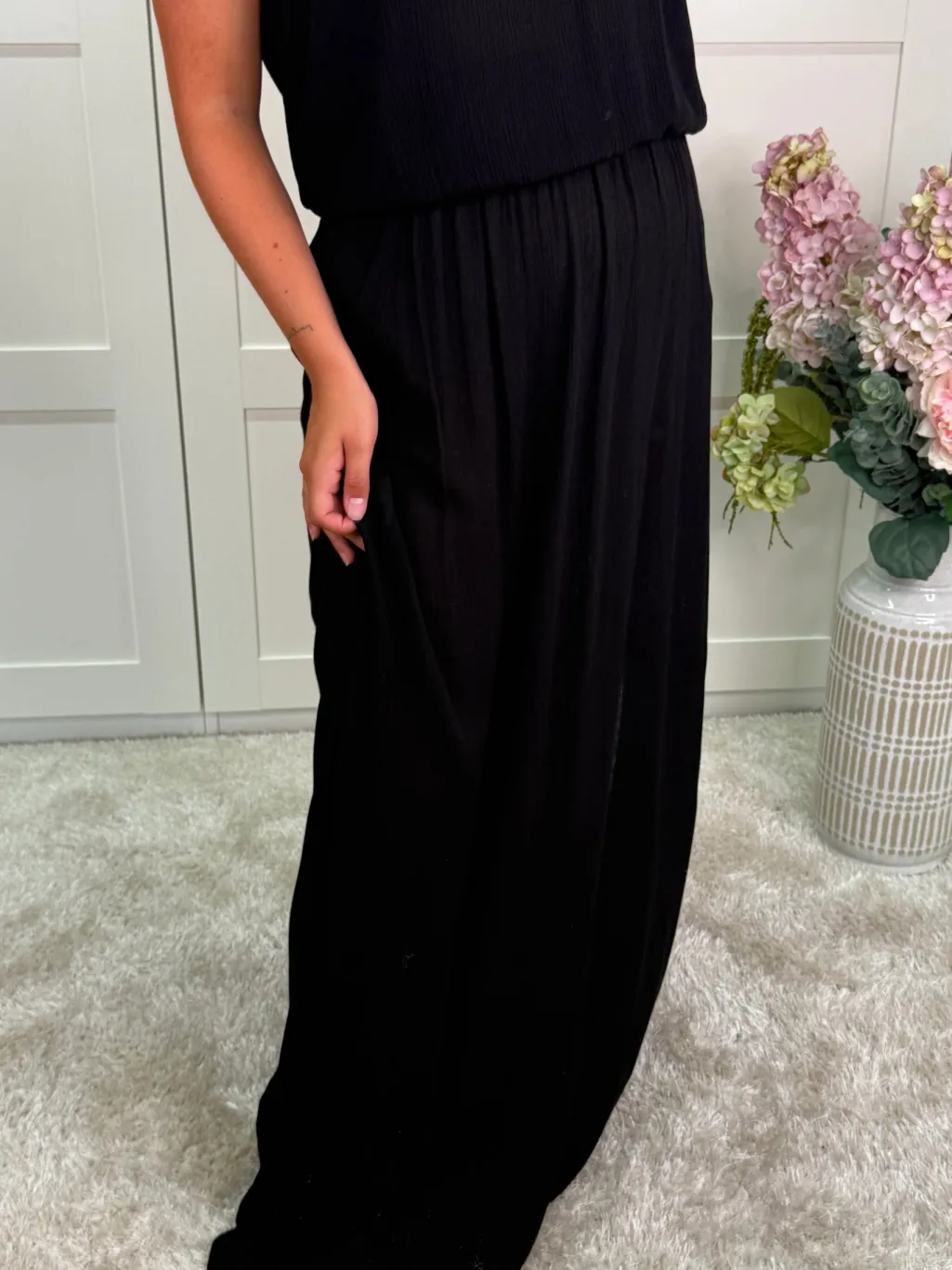 Sort nederdel fra A-bee med en gulvlang længde og en lige, flydende form.