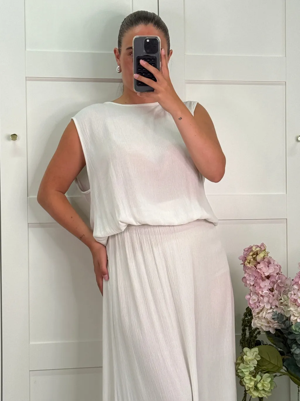 En ærmeløs top fra A-bee, lavet af viskose i en beige nuance. Toppen har en løs pasform og en rund halsudskæring.
