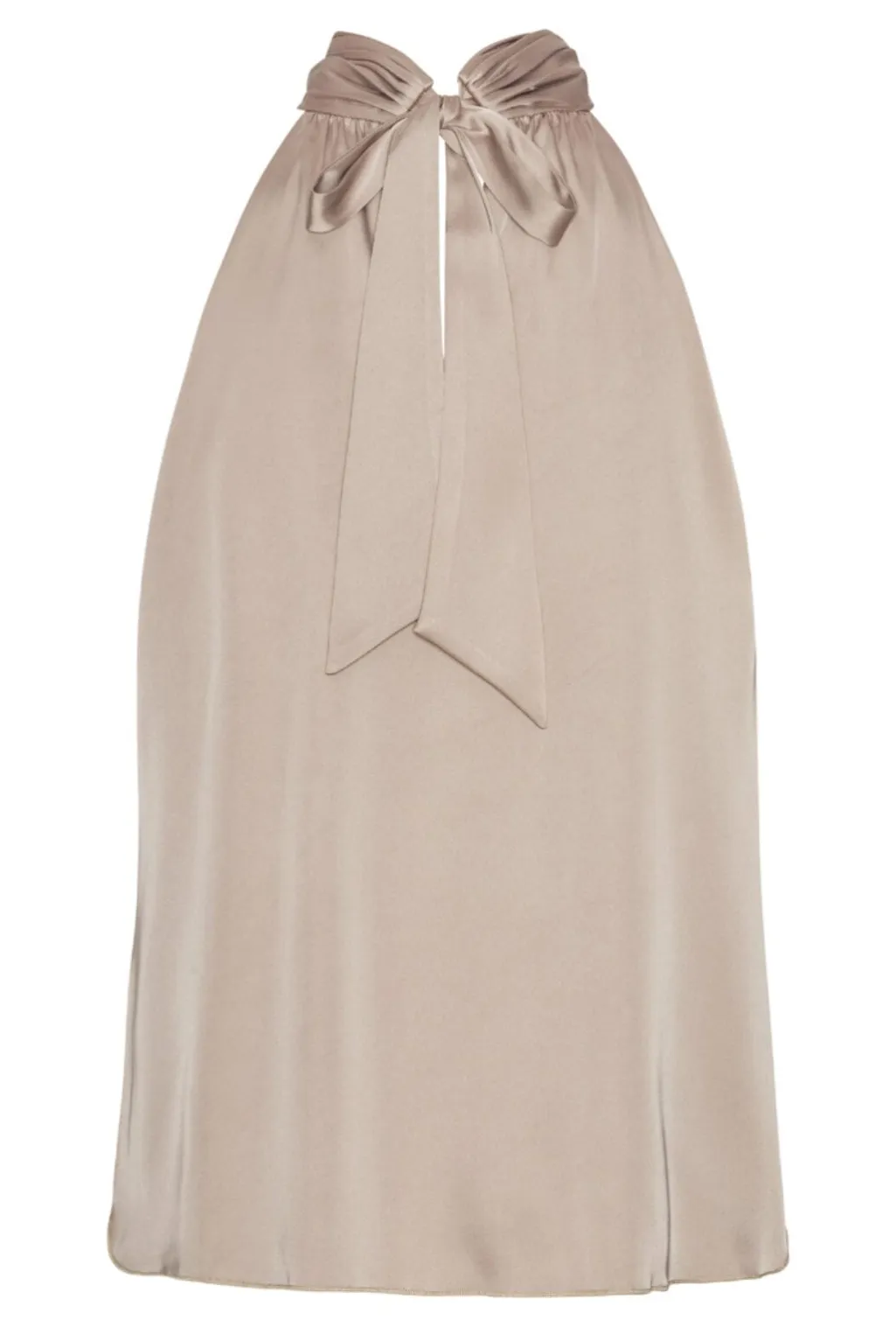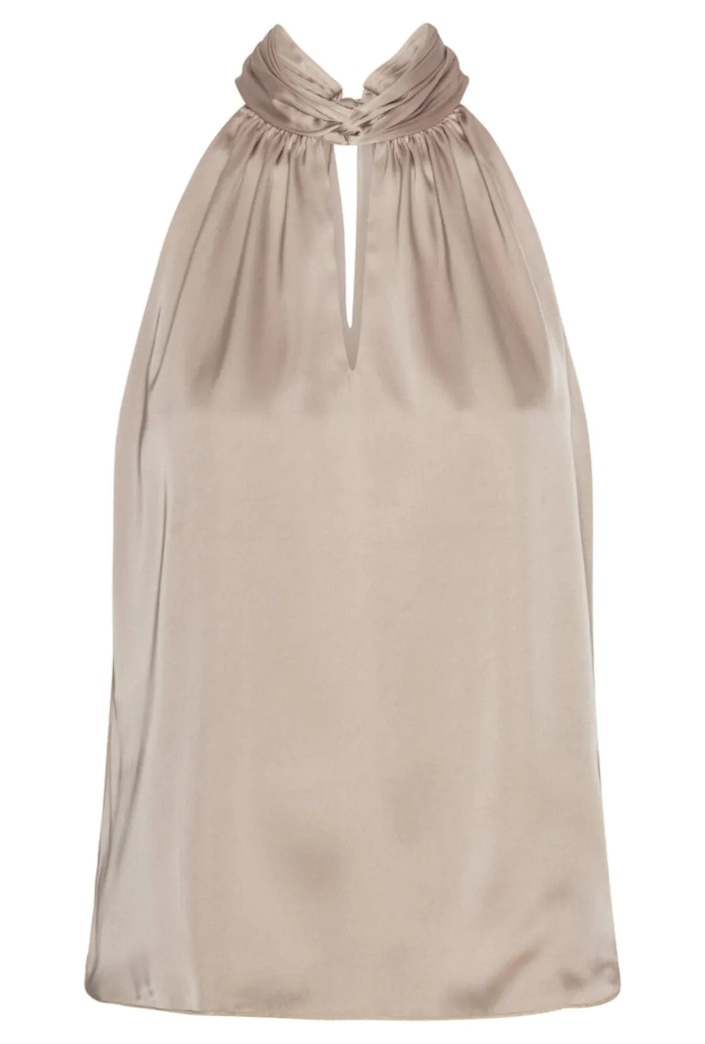 Beige top fra Karmamia med halterneck-design og snoet detalje ved halsen. Toppen har bånd ved nakken og en nøglehulsåbning på forsiden.