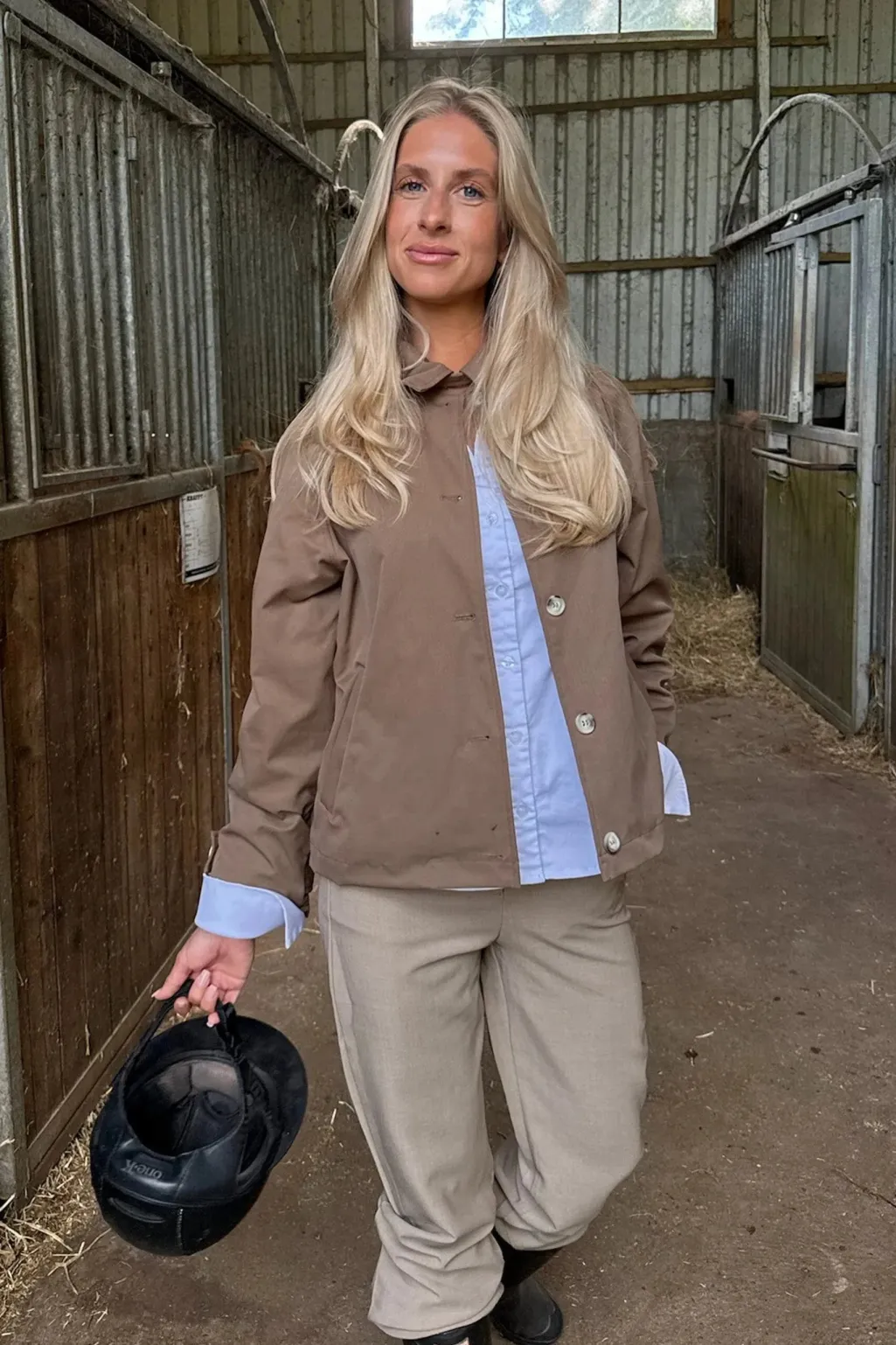 Kort trenchcoat fra BYIC i mørkebrun. Jakken har en løs pasform og er lavet af 100 % polyester med klassiske designdetaljer.