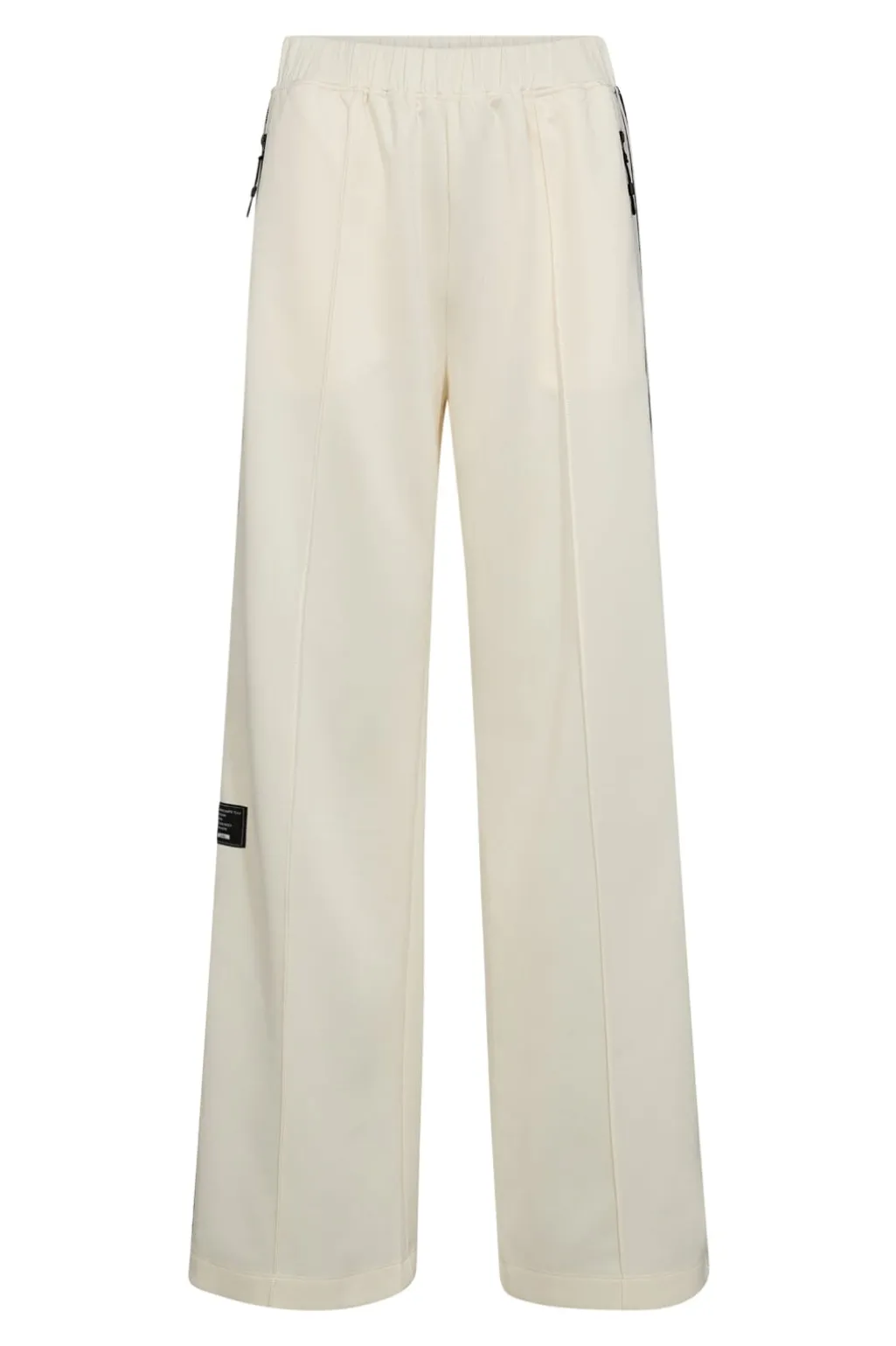 Lyse bukser fra Haute L’Amitié i off-white nuance. Bukserne er lavet af 100 % polyester med striber ned langs siderne.
