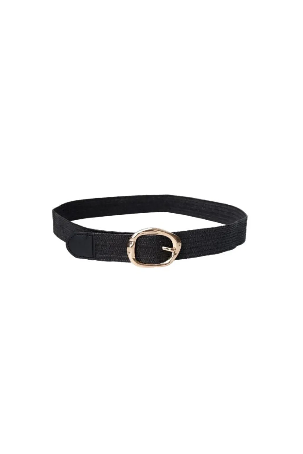 Sort bælte fra Black Colour med en ensartet bredde og rustik overflade. Bæltet har et guldfarvet spænde, der skaber en fin kontrast til det sorte materiale.