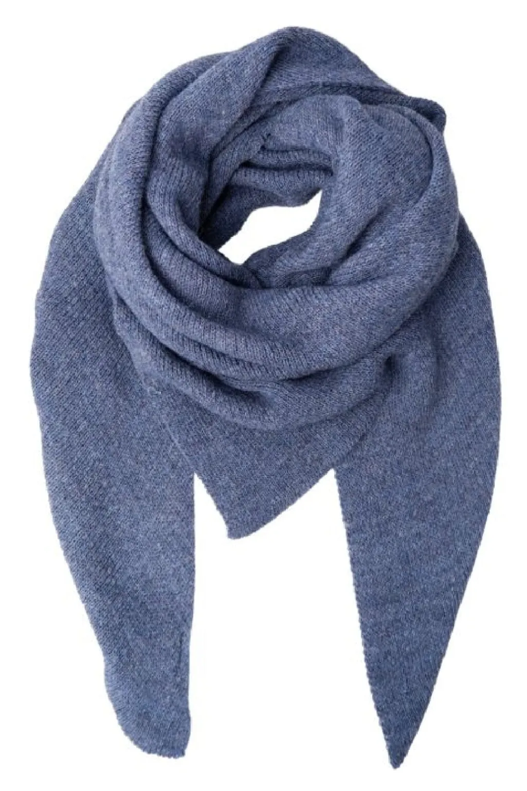 Mørkeblåt tørklæde fra Black Colour med trekantet form og synligt strikmønster. Tørklædet har spidse ender og en ensfarvet overflade i en klassisk jeansnuance.