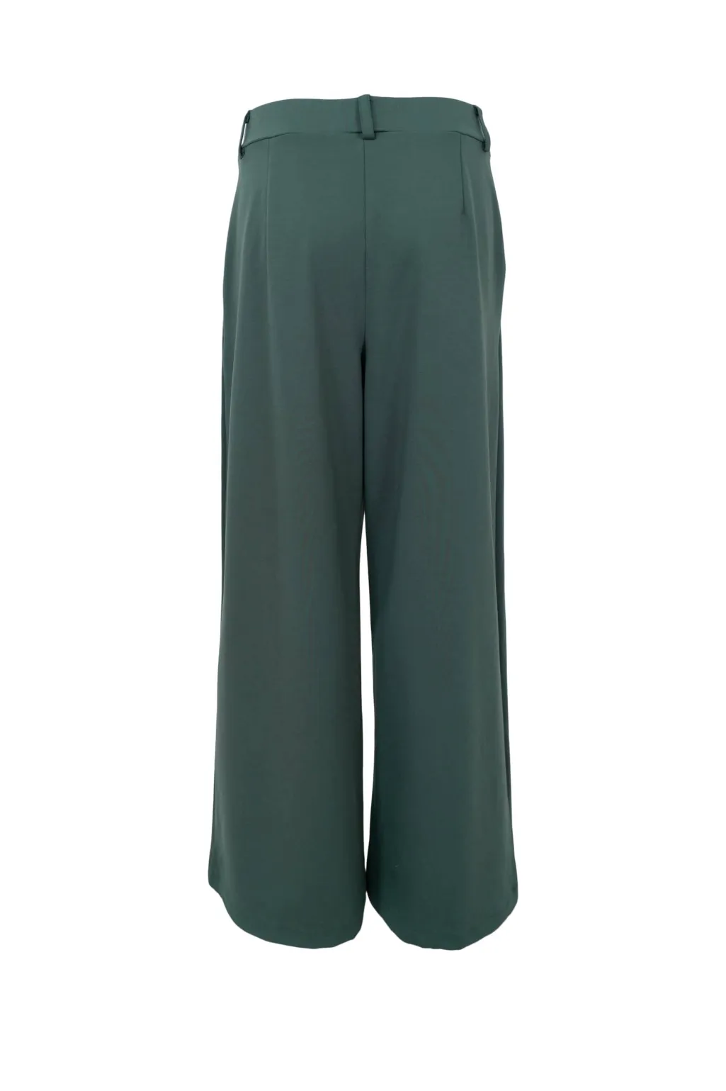 Wideleg-bukser fra Black Colour i flaskegrøn. Bukserne har brede ben med frontlæg og en høj talje med bæltestropper.