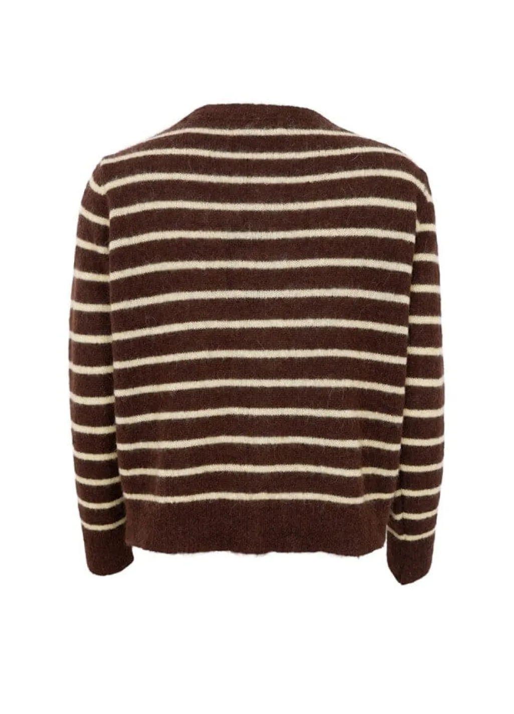 Stribet cardigan fra Black Colour i brun. Den har en knappelukning foran og lange ærmer med rund hals.
