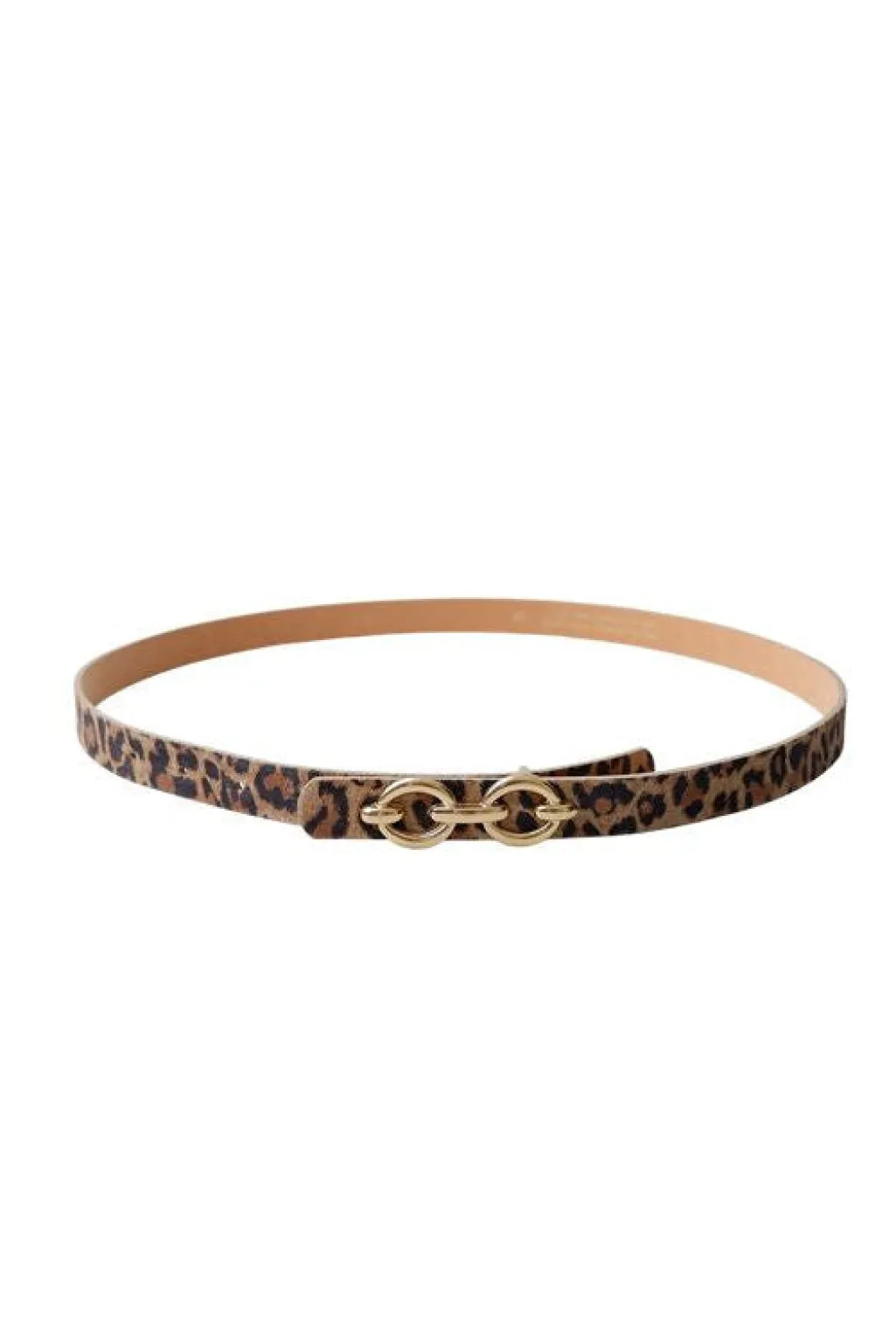 Bælte fra Black Colour med leopardmønster. Bæltet er lavet af læder og har et guldfarvet spænde foran.