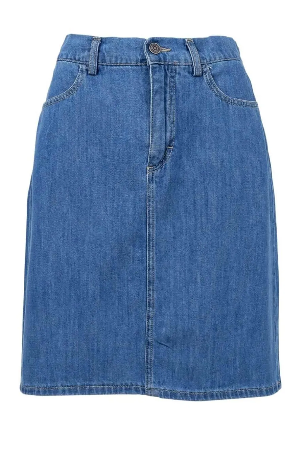 Denimnederdel fra Black Colour i mellemblå vask. En klassisk model med normal pasform og knælængde, der nemt kan styles med forskellige overdele.