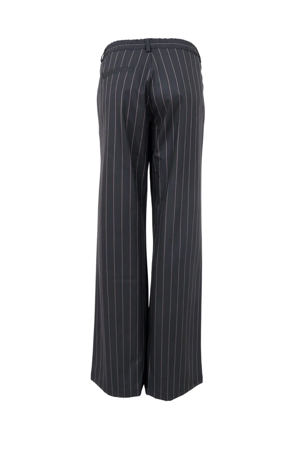 Sorte bukser fra Black Colour med lodrette pinstriber. Bukserne har en løs pasform og en almindelig taljehøjde.