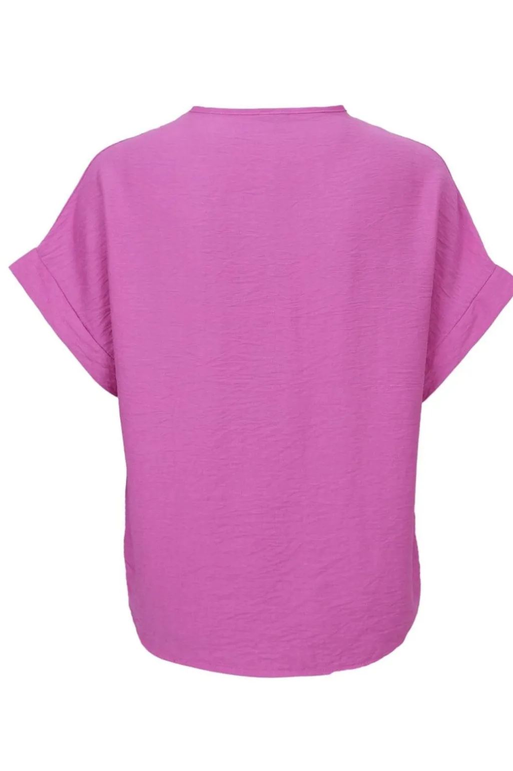Pink bluse fra Black Colour i en blød materialeblanding. Blusen har en v-udskæring og korte ærmer med opsmøg.