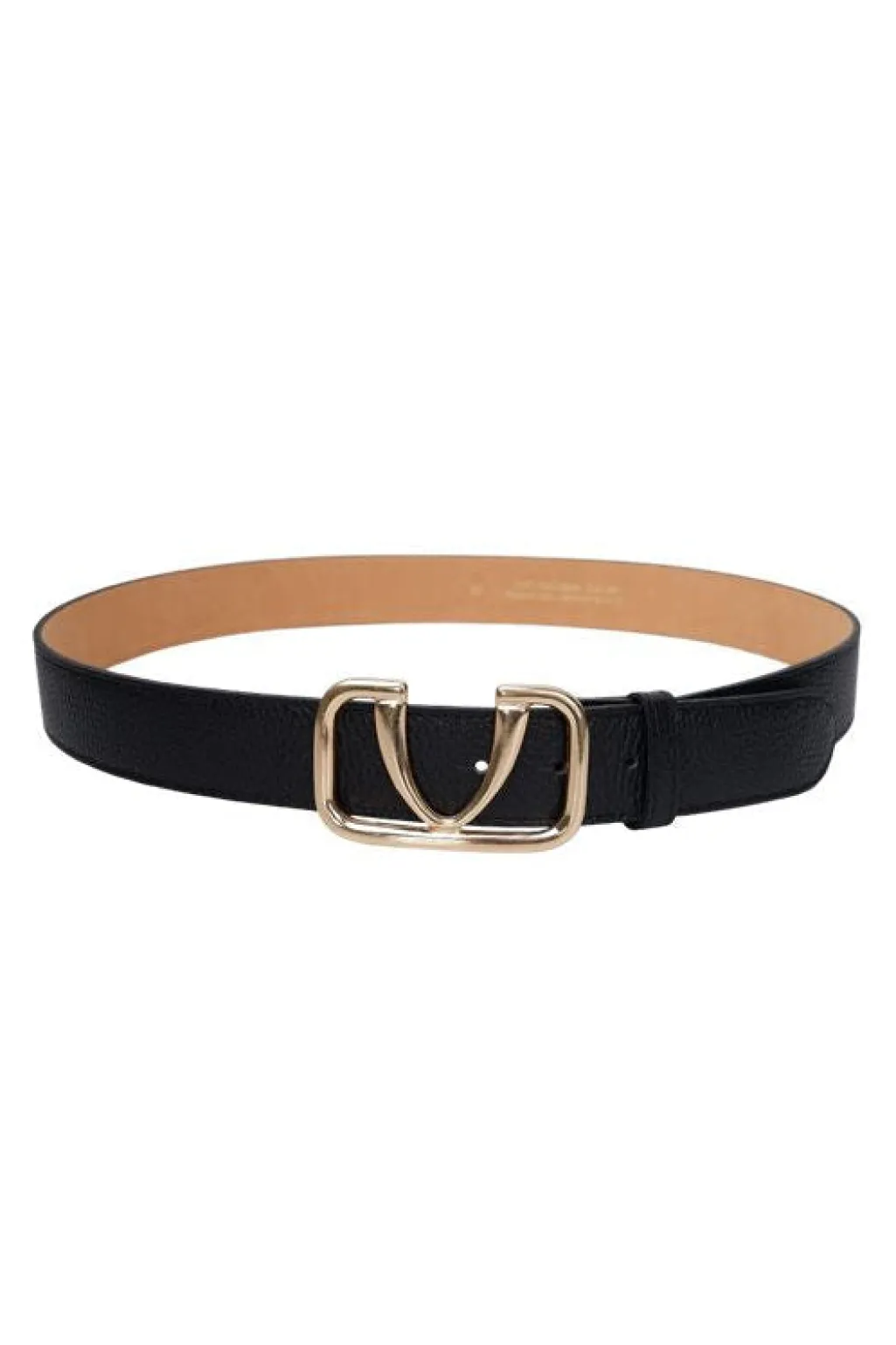 Sort bælte fra Black Colour, fremstillet af ægte læder. Bæltet har en glat overflade og et gyldent spænde i V-form.