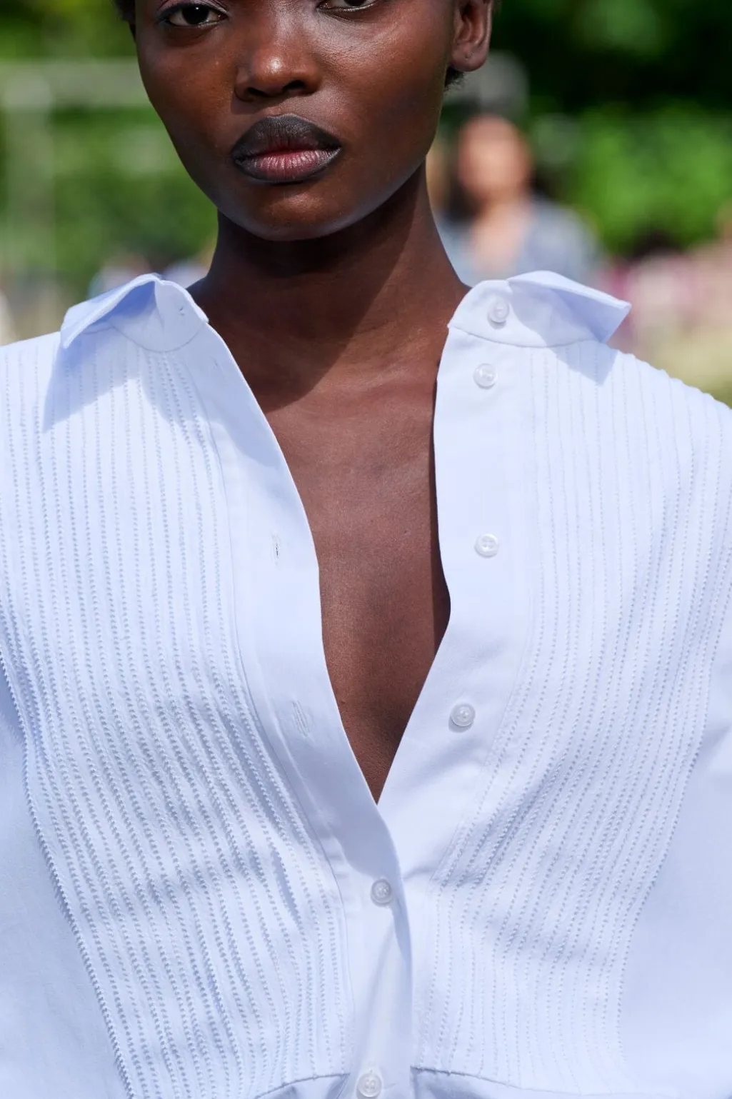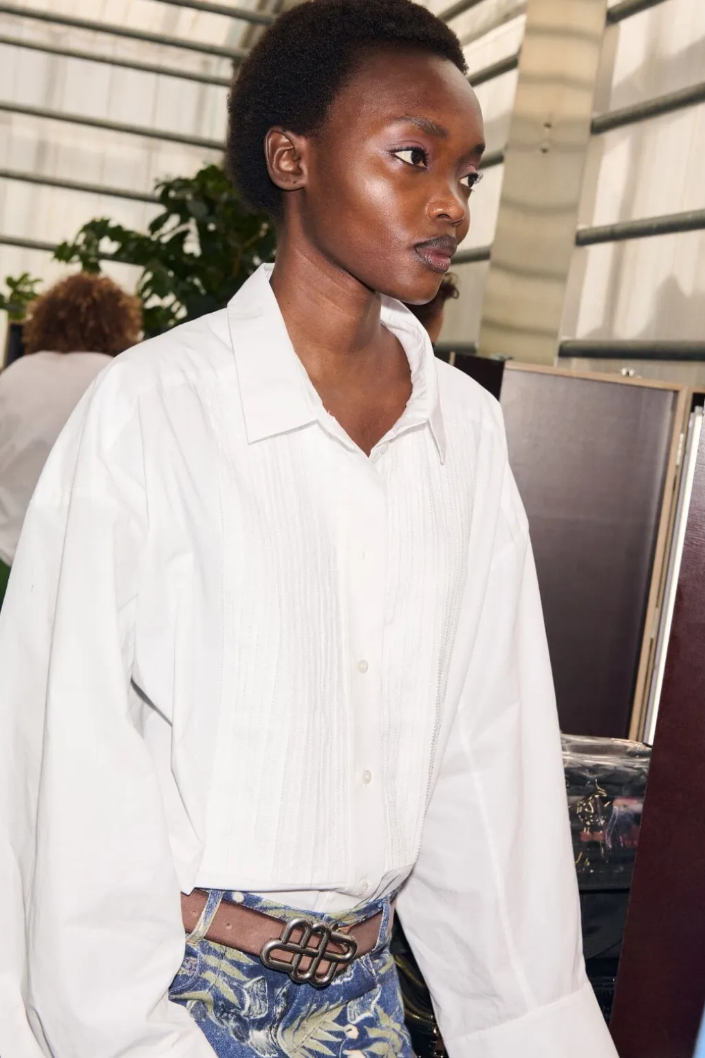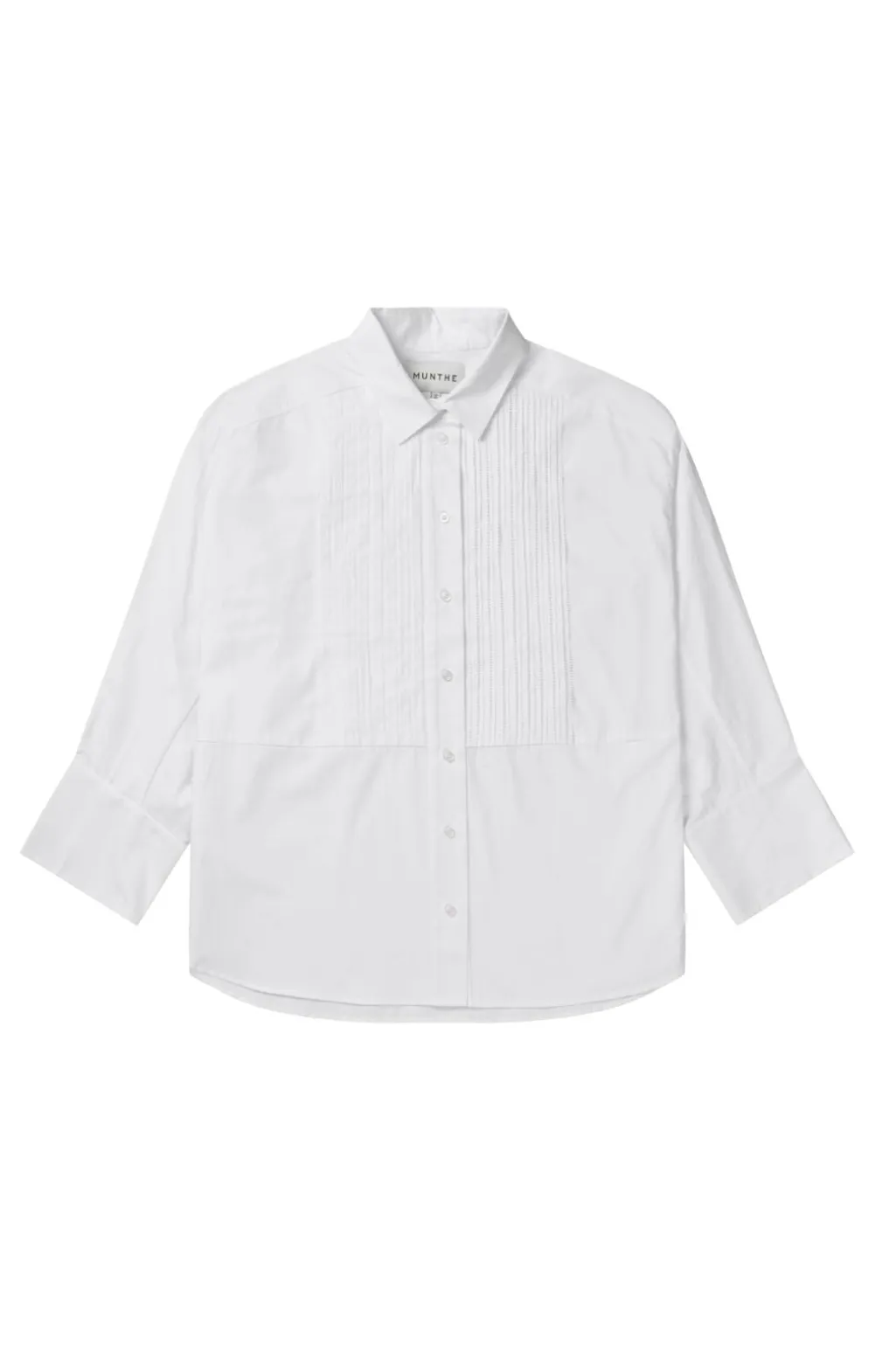 Hvid skjorte fra Munthe, lavet af 100 % økologisk bomuld. Skjorten har en oversized pasform og lange ærmer med en klassisk krave.