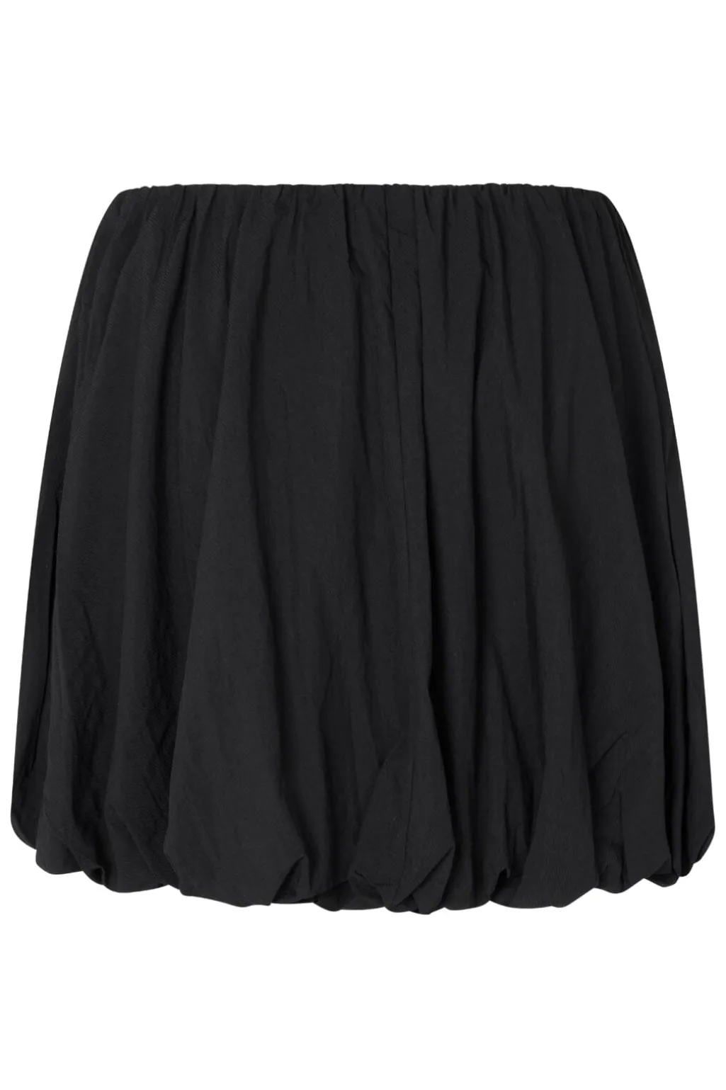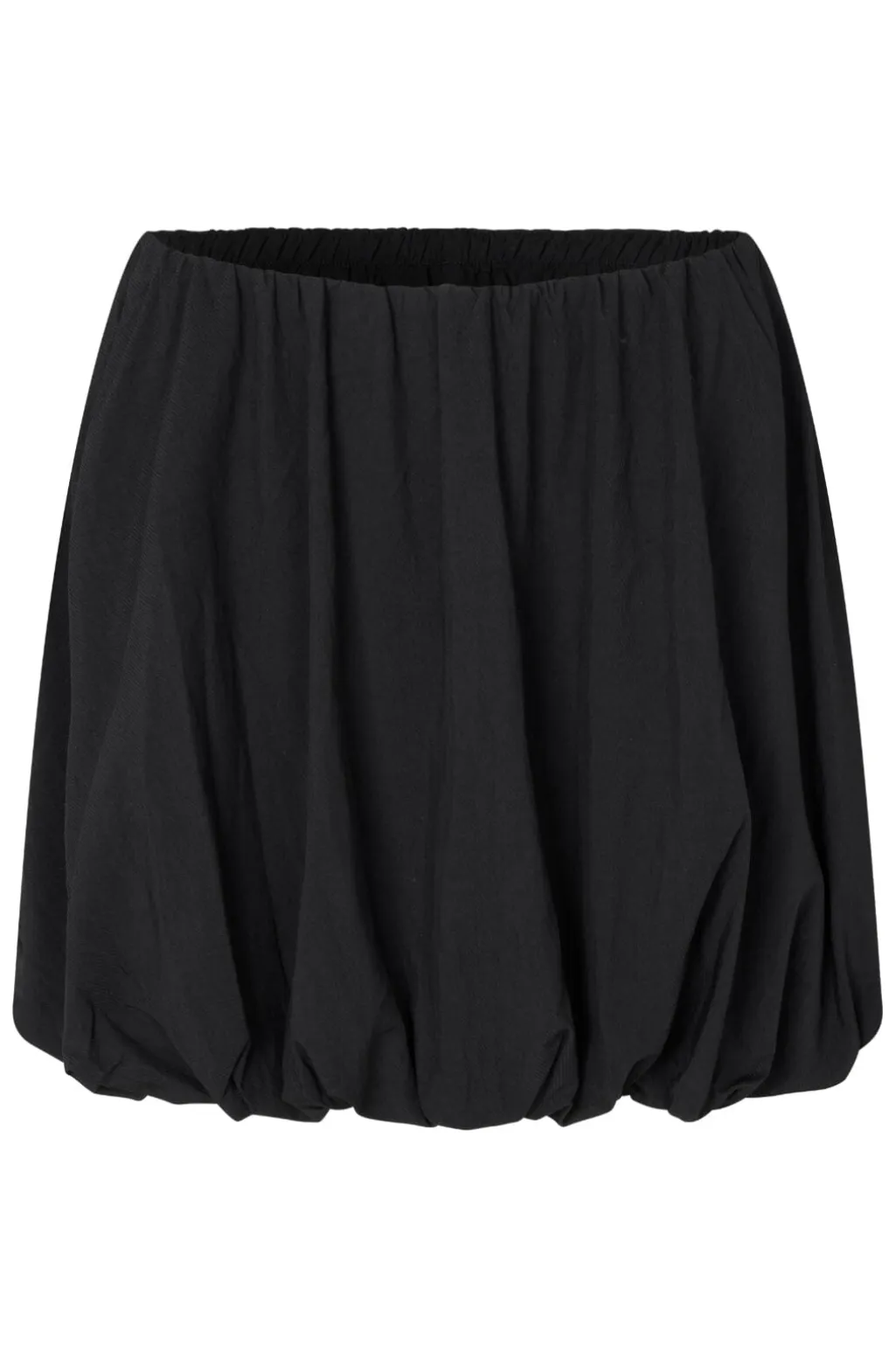 Sort puffet nederdel fra MbyM med flæser og ballonlignende silhuet. Nederdelen har en normal pasform og går til midt på låret.