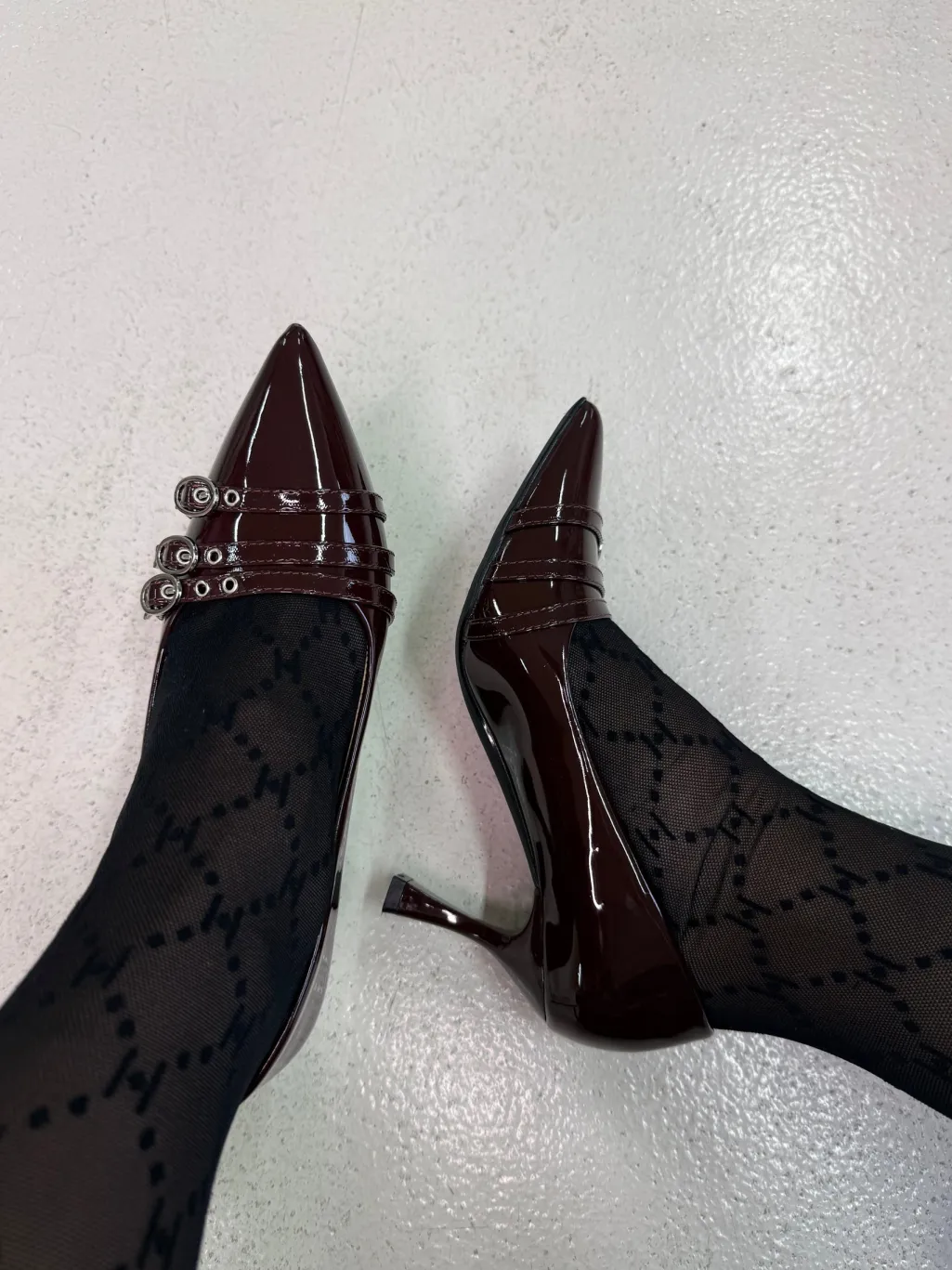 Stiletter fra Bloom i en mørk bordeauxfarve. Skoen har en stilettohæl og en firkantet tå.
