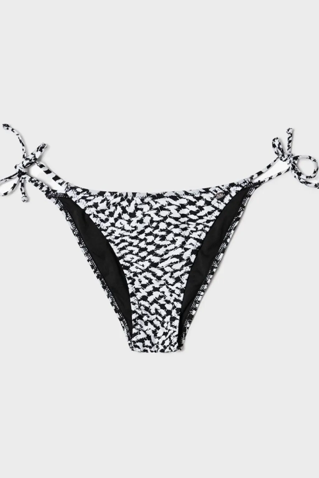 Bikinibund fra Lala Berlin i jersey med sort og hvidt Swoosh Heritage-print. Den har bindebånd i siderne og sort foring indeni.