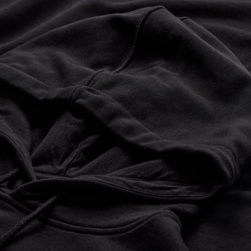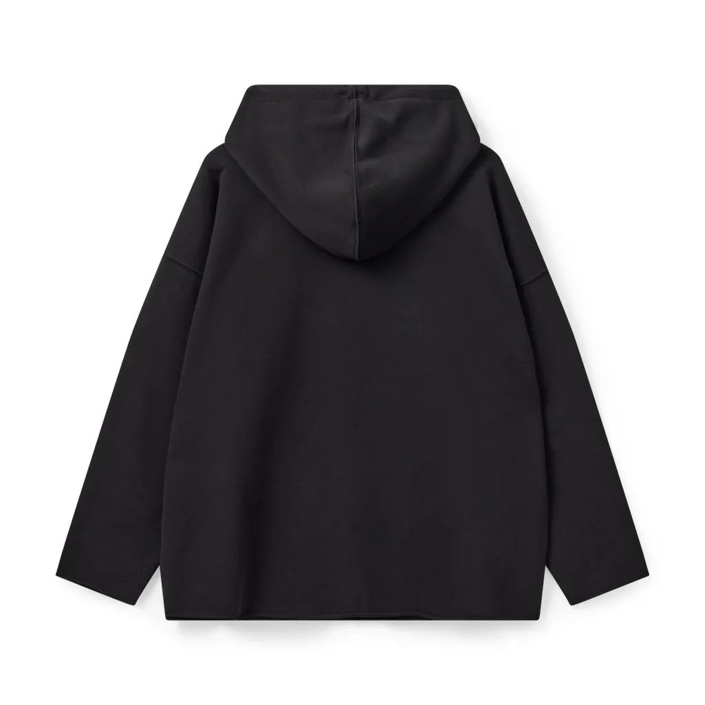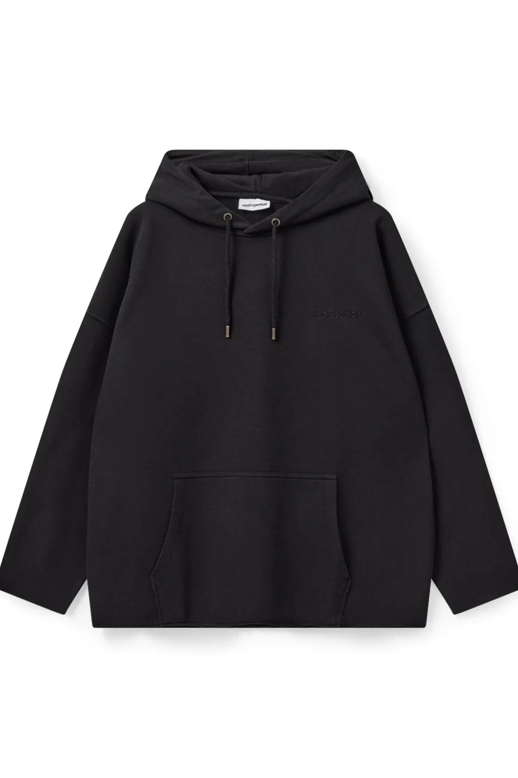 Sort hættetrøje fra H2O Fagerholt med kængurulomme og rullede kanter. Den oversized pasform og det tone-i-tone logo giver hættetrøjen et rent og enkelt udtryk.