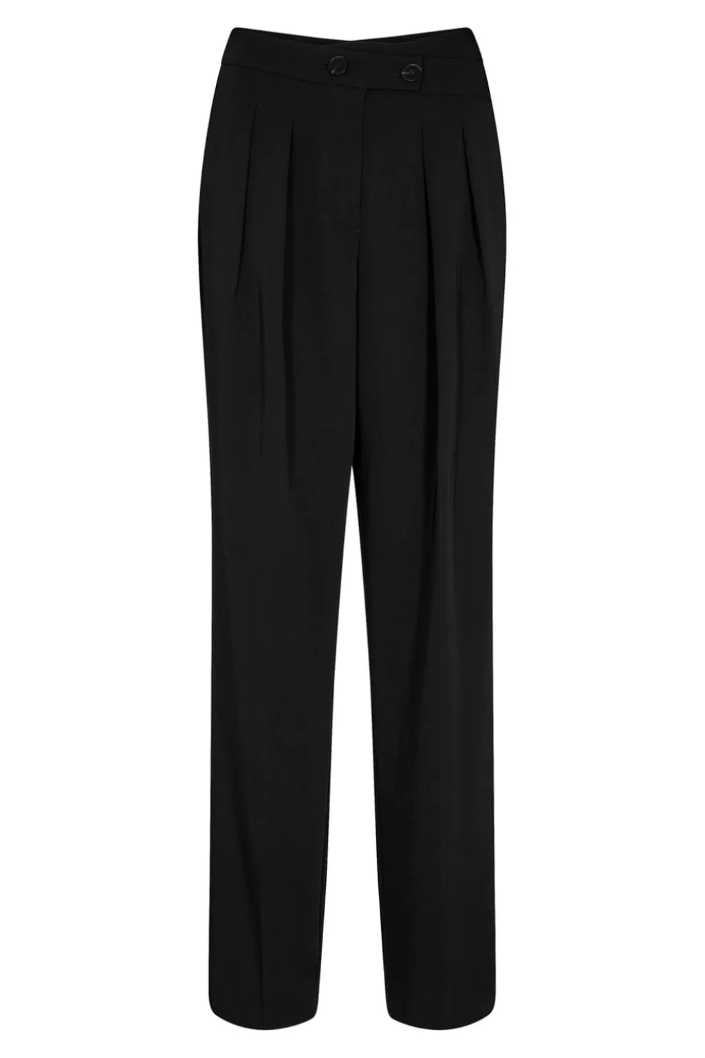 Sorte bukser fra Co’couture med plissering foran. Bukserne har høj talje og løs pasform, der giver god bevægelsesfrihed. Lukning med lynlås og knapper i ankellængde.