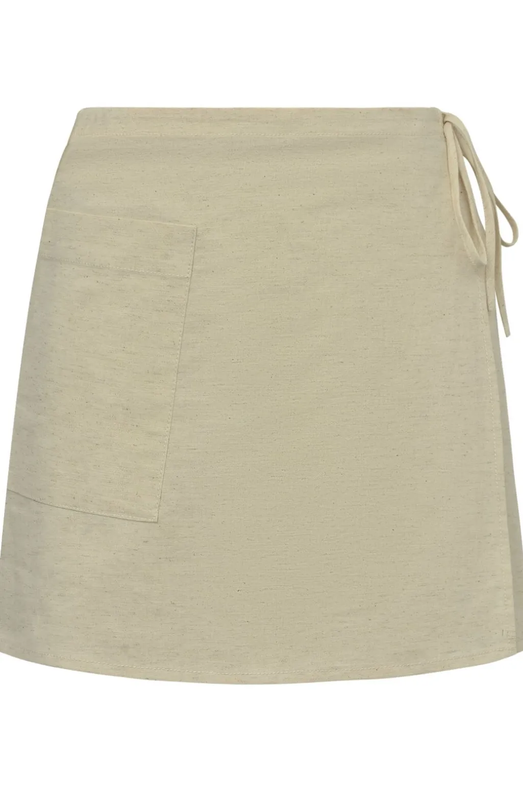 Beige nederdel fra Global Funk i en blanding af bomuld og hør. Nederdelen har en lomme på venstre side og bindebånd i taljen. Den går til midt på låret.