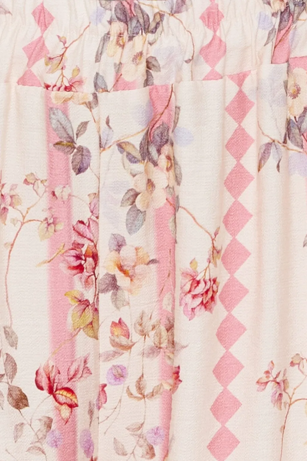 Bukser fra Marta Du Chateau i hvid med blomstermønster i pink og creme nuancer. De har en klassisk pasform og ankellængde med elastiske detaljer.