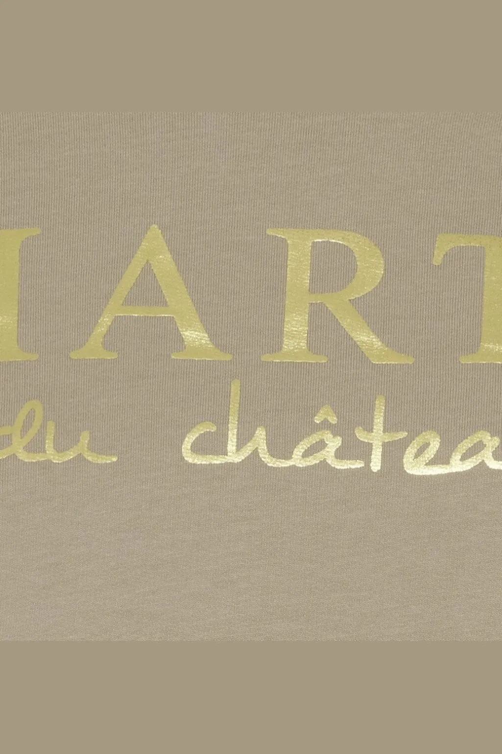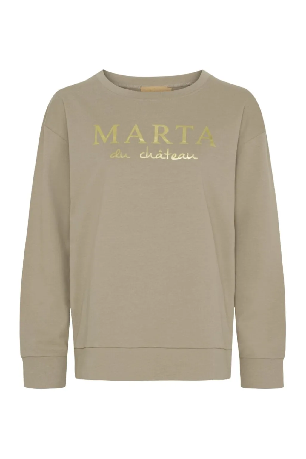 Sandfarvet sweatshirt fra Marta Du Chateau med rund hals og lange ærmer. Sweatshirten har en afslappet pasform og et gyldent brandprint på forsiden.