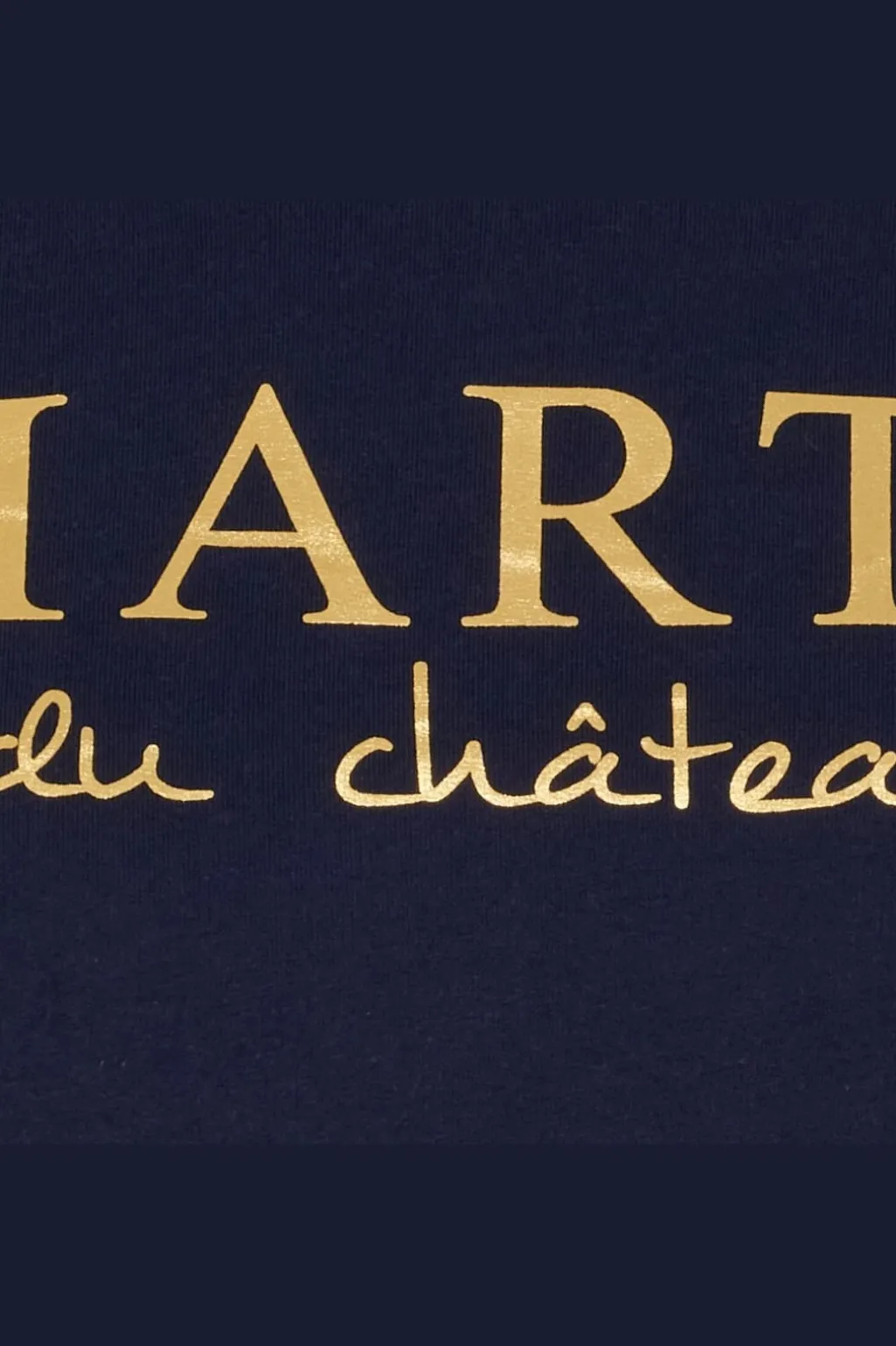 Mørkeblå sweatshirt fra Marta Du Chateau med guldfarvet broderi på forsiden. Designet har rund hals og lange ærmer, hvor MARTA står med fed skrift, og du château i kursiv.