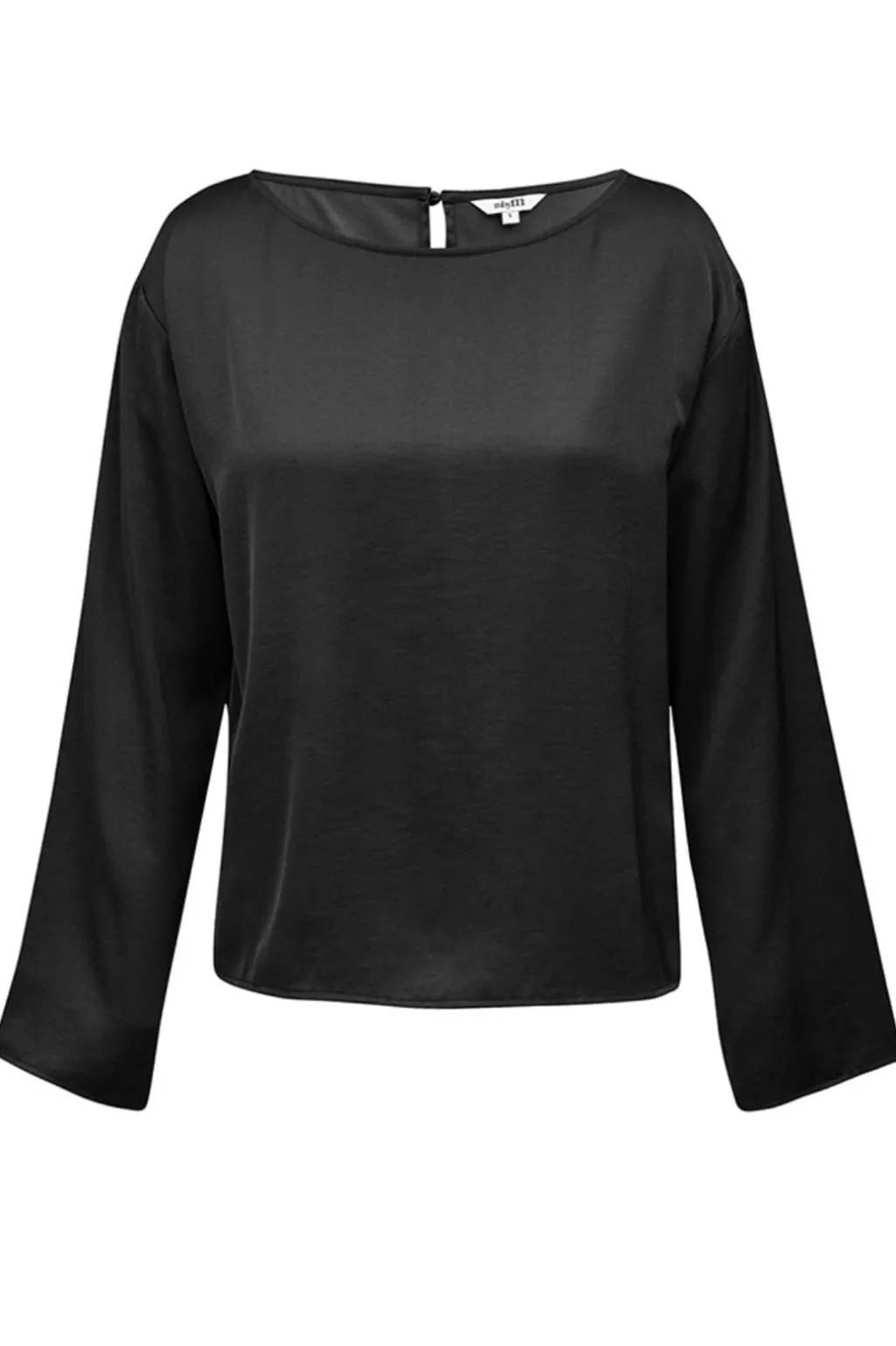 Sort top fra MbyM med rund halsudskæring og lange ærmer. En alsidig top med en lille nøglehulåbning i nakken, der lukkes med en knap.