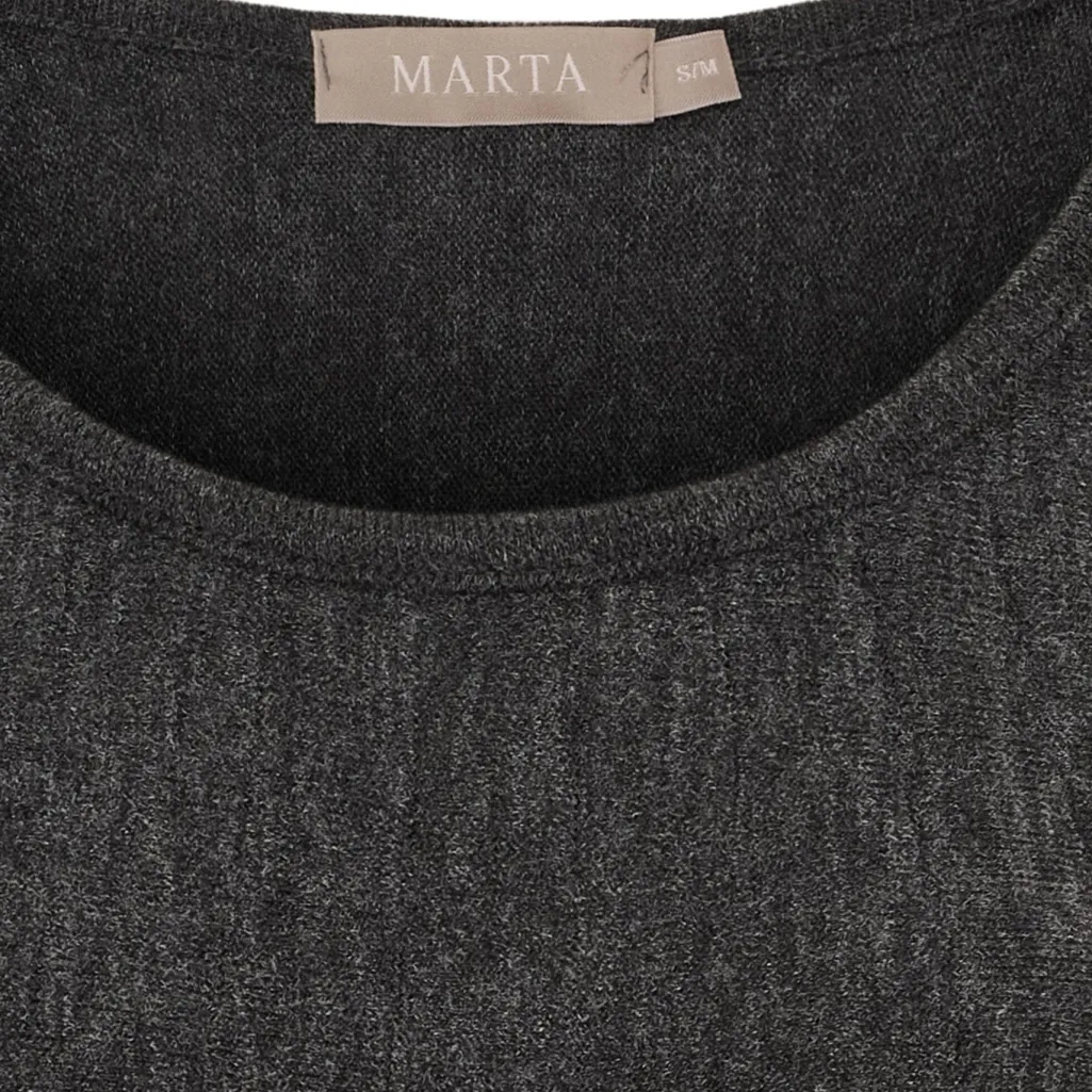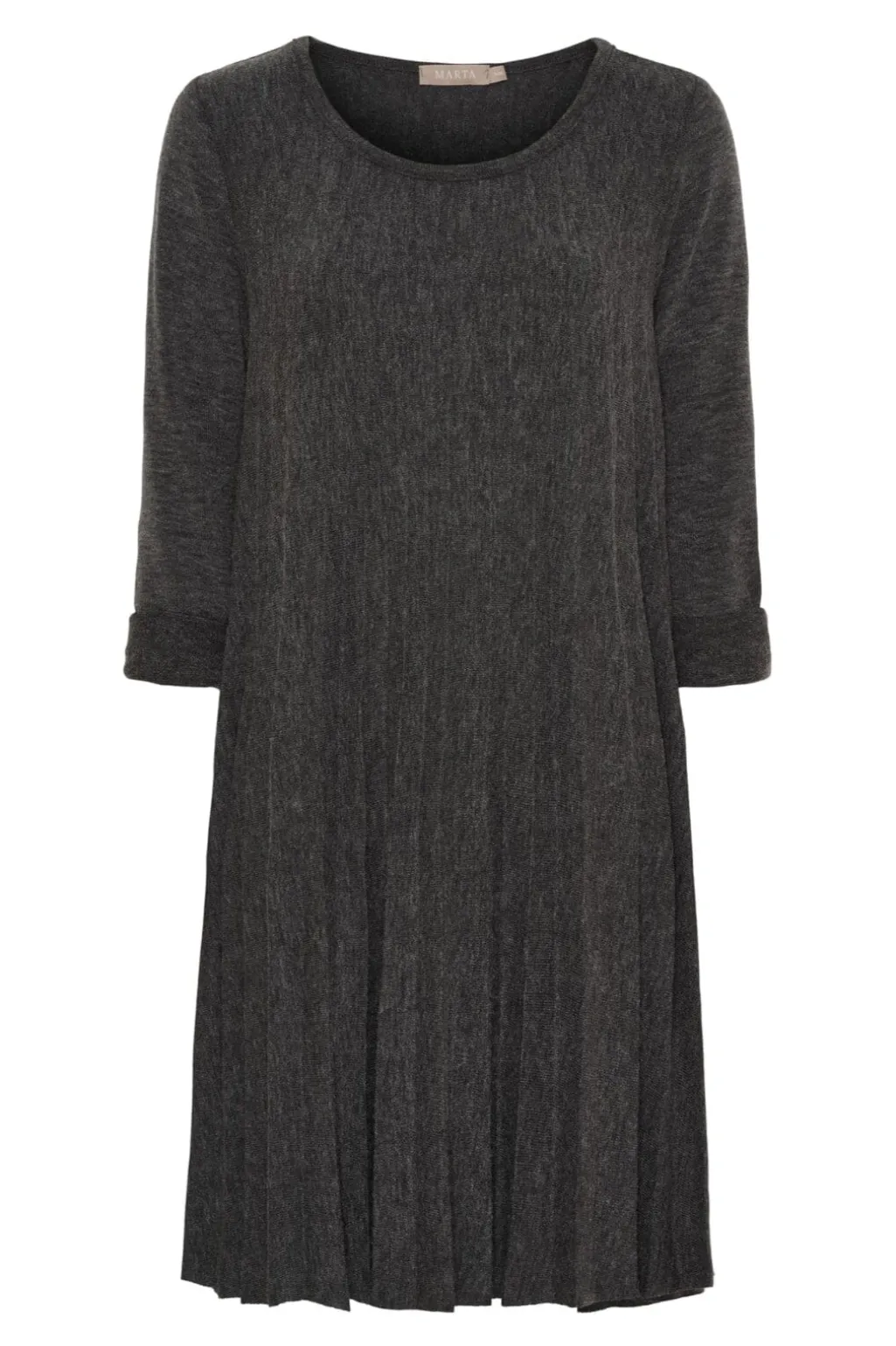 Mørkegrå kjole fra Marta Du Chateau med plisseret nederdel. Kjolen har en løs pasform og knælængde, hvilket gør den velegnet til både hjemmebrug og afslappede anledninger.