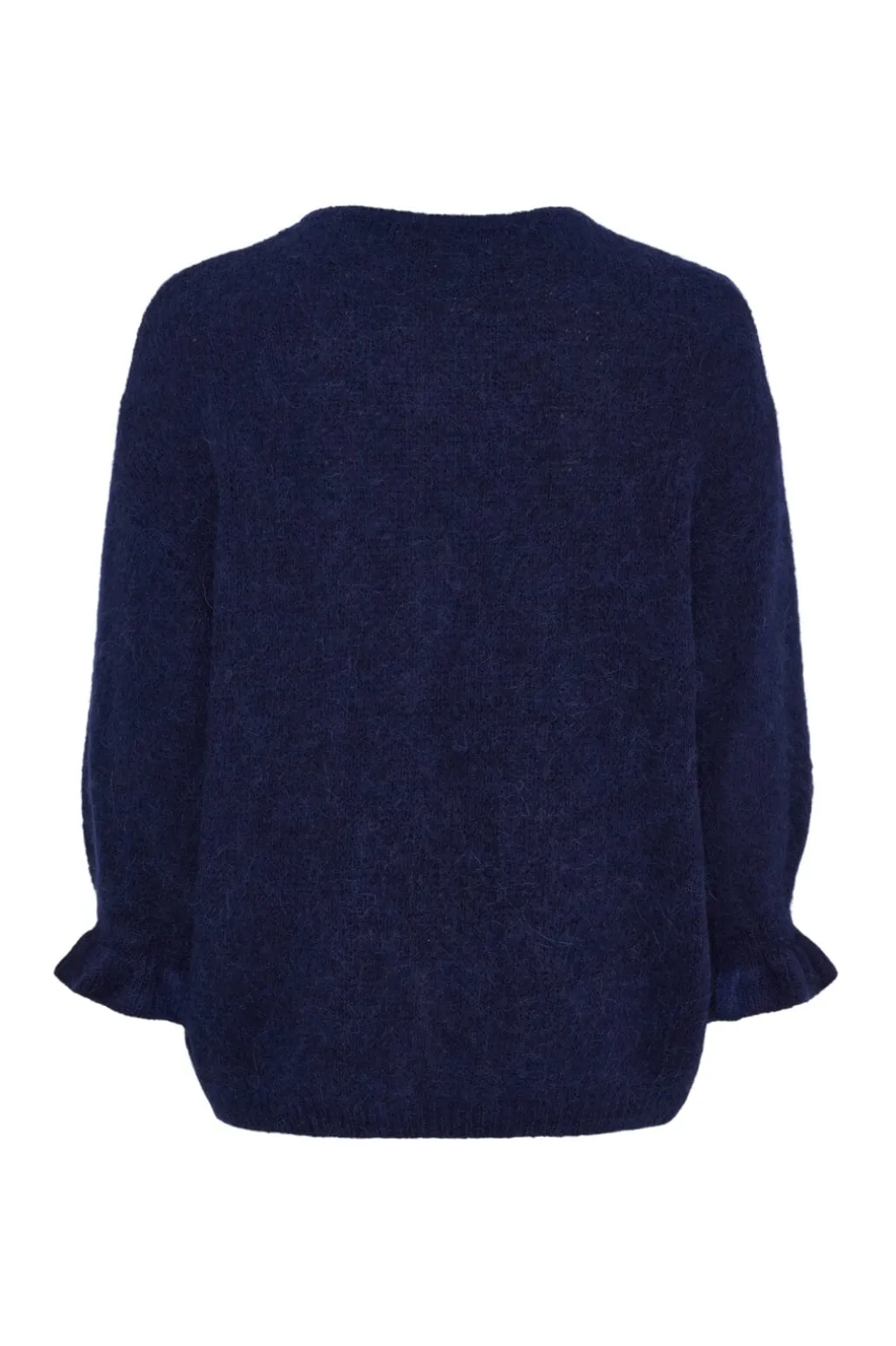 Mørkeblå strikket cardigan fra Marta Du Chateau med rund halsudskæring og knapper langs forsiden. Cardiganen har 3/4-ærmer med samlede manchetter.