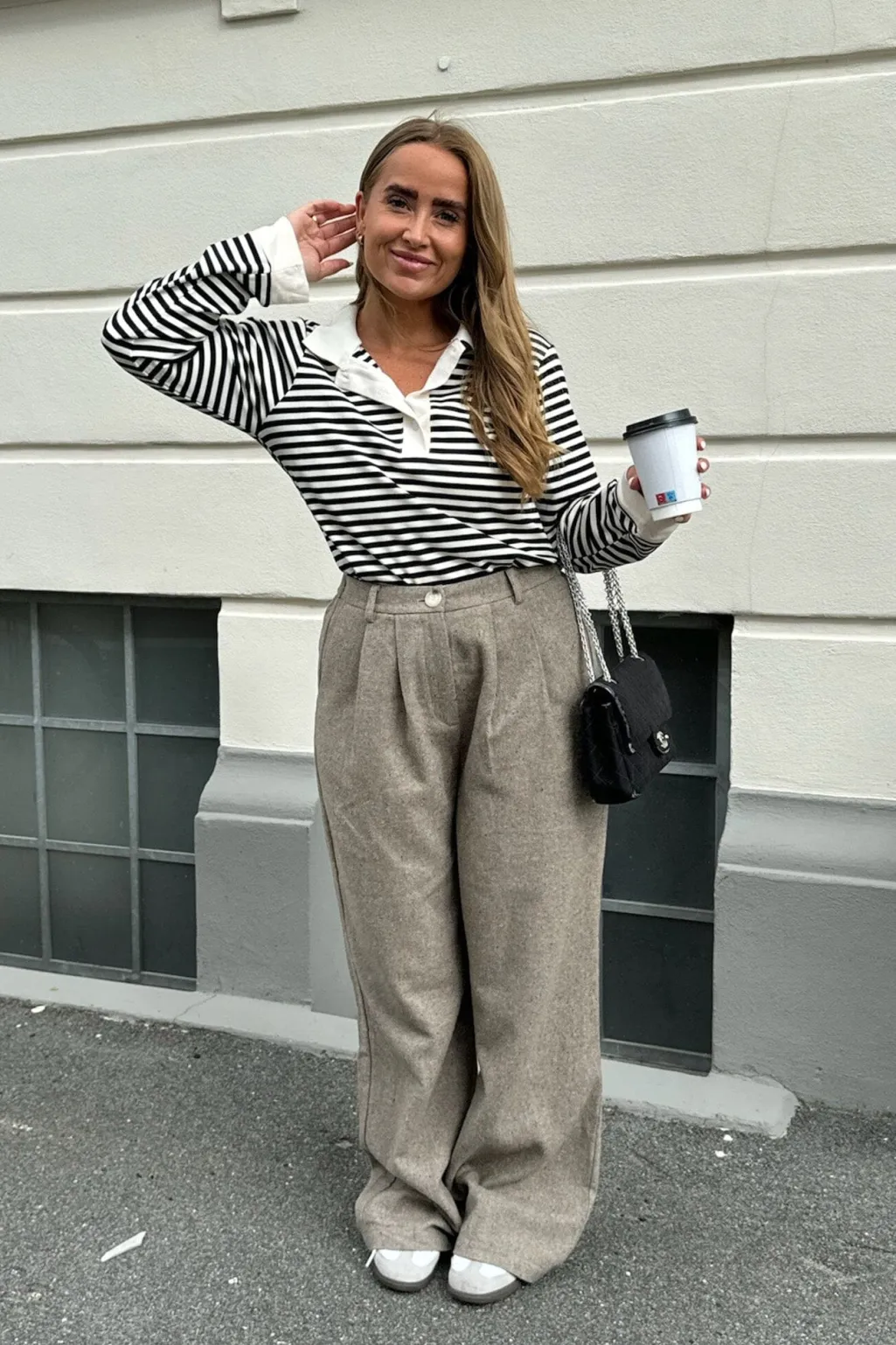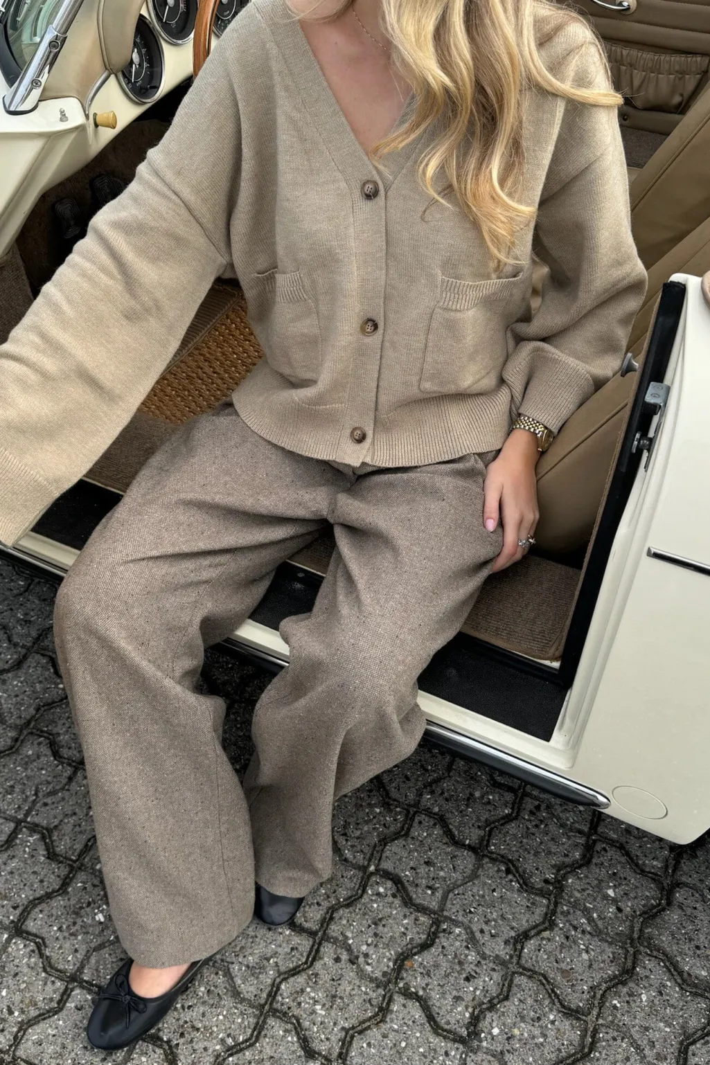 Bukser fra BYIC i brun melange. De har en bred benstil og høj talje med et skræddersyet design og blødt materiale.