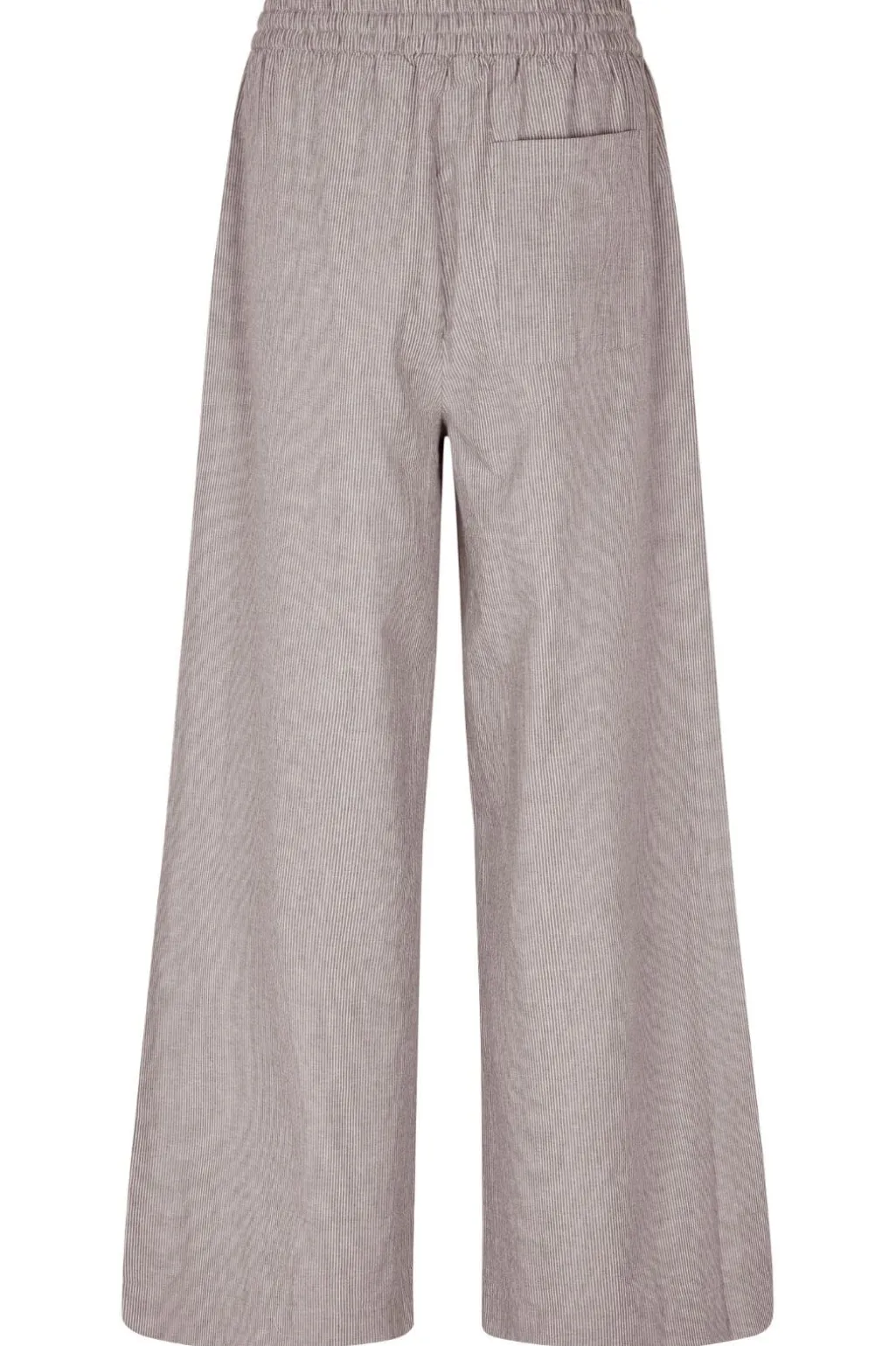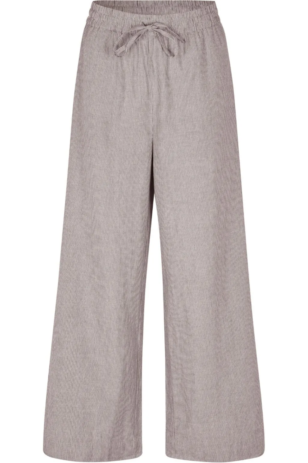 Stribede bukser fra MbyM i beige og hvide nuancer. Bukserne har en løs pasform og går til midt på læggen med elastik og snøre i taljen.