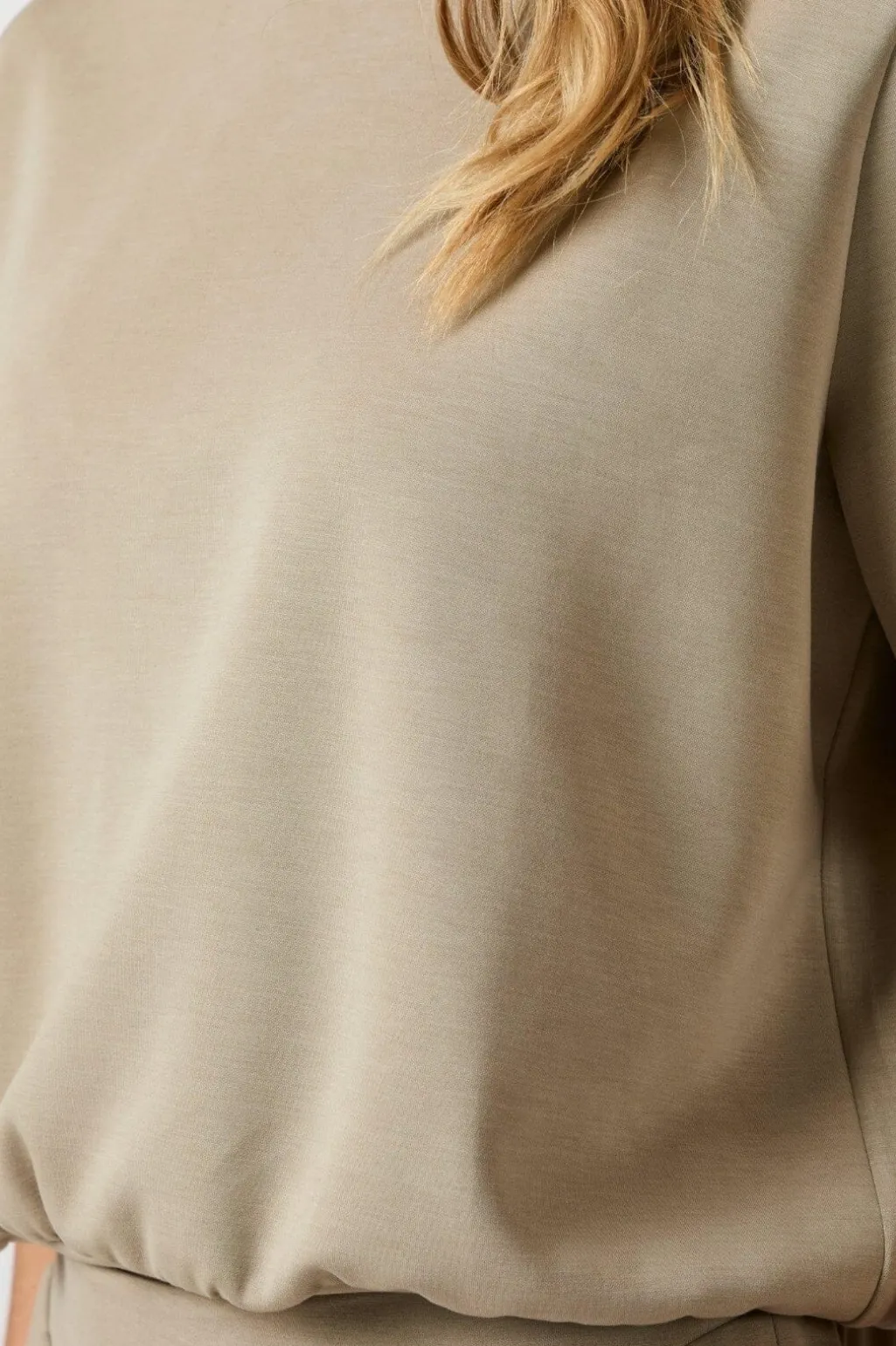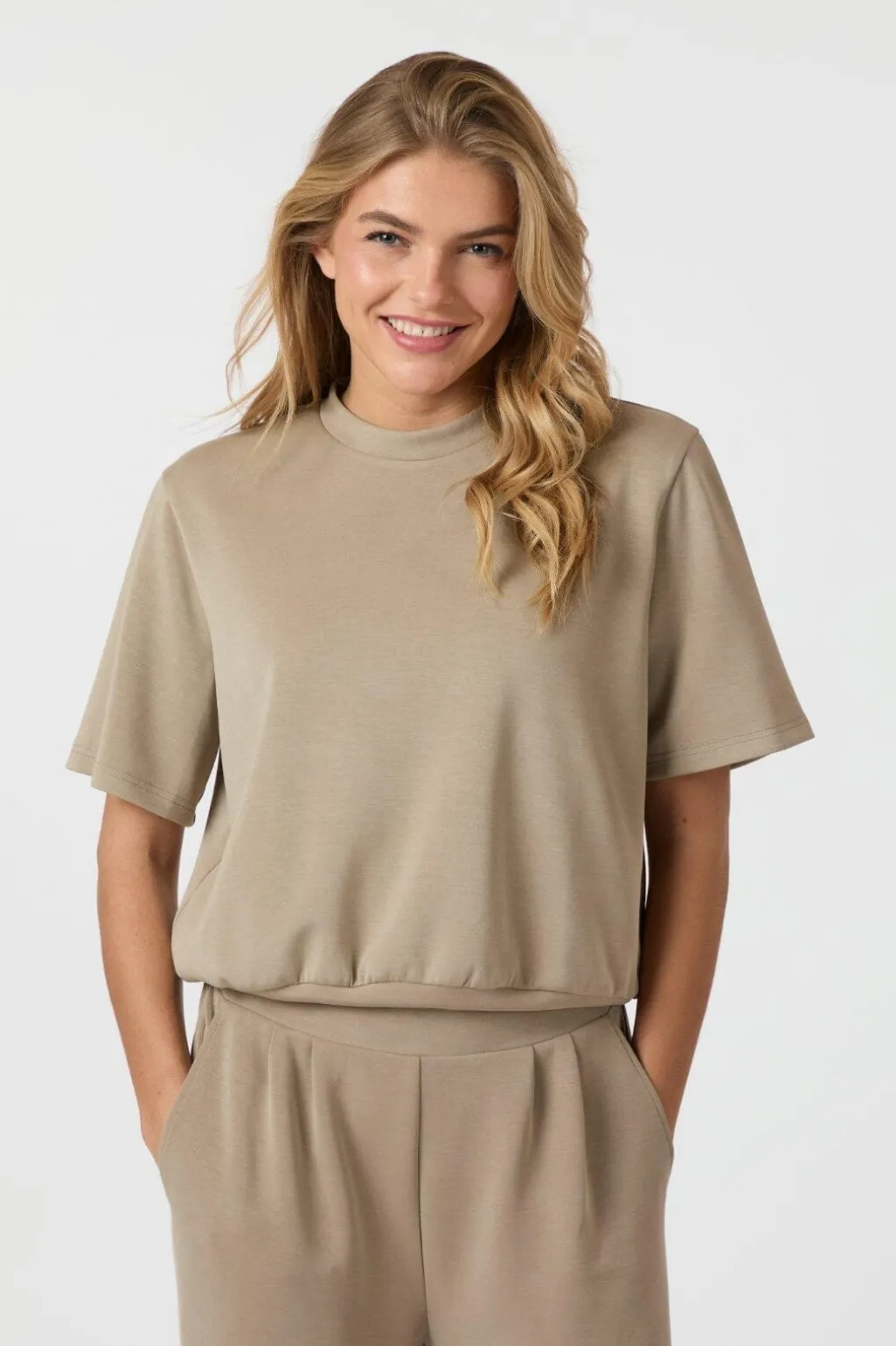 T-shirt fra Neo Noir i taupe farve. Den bløde materialekombination og den særlige balleffekt i bunden giver t-shirten sit eget udtryk.