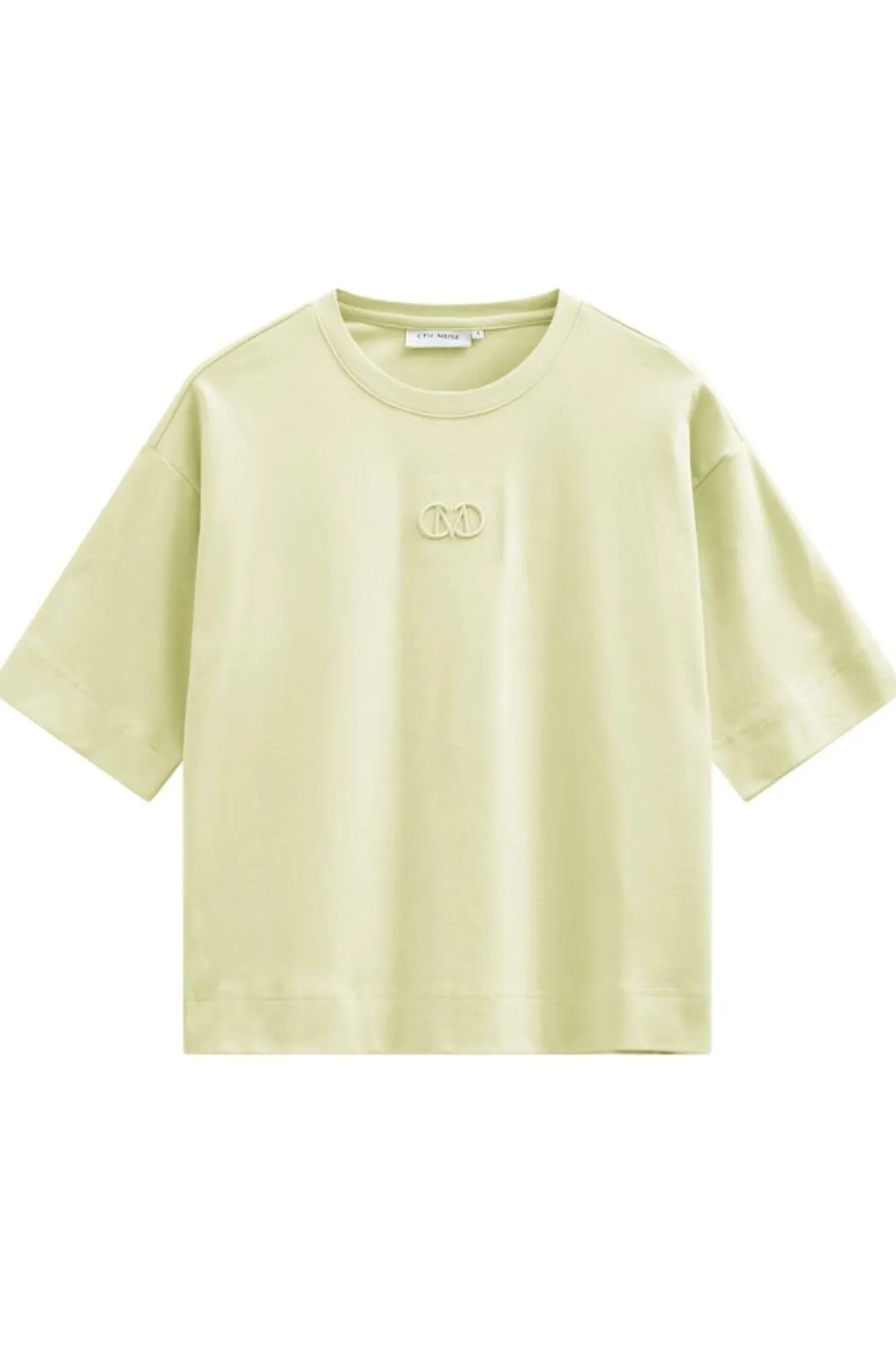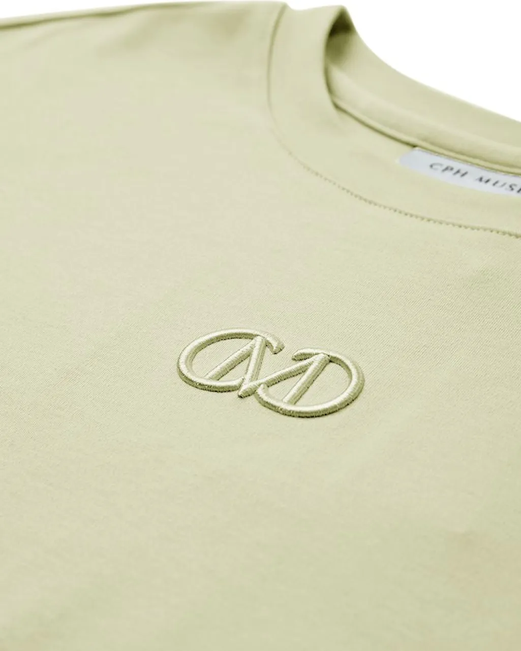 T-shirt fra Copenhagen Muse i lysegrøn med broderet logo på brystet. Den har en oversized pasform med drop shoulders og rund halsudskæring.