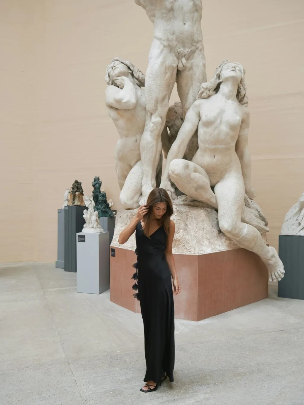 - Modellen er 176 cm høj og bærer størrelse 36