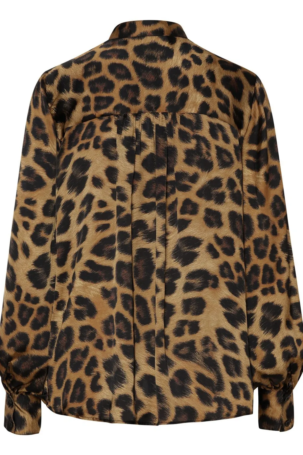Satinskjorte fra Karmamia med et mix af brunt leopardprint og farverige blomster. Skjorten har en løs pasform med skjortekrave og lange ærmer.