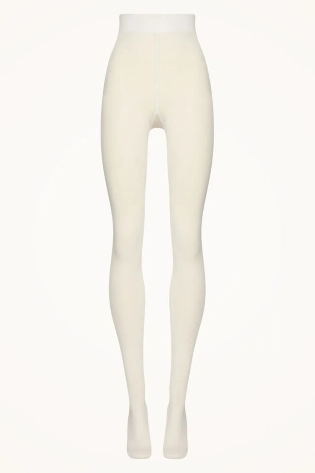 Ribbede strømpebukser fra Wolford i en cremehvid nuance. Det ribbede design giver strømpebukserne struktur, mens den høje talje sikrer en god pasform.