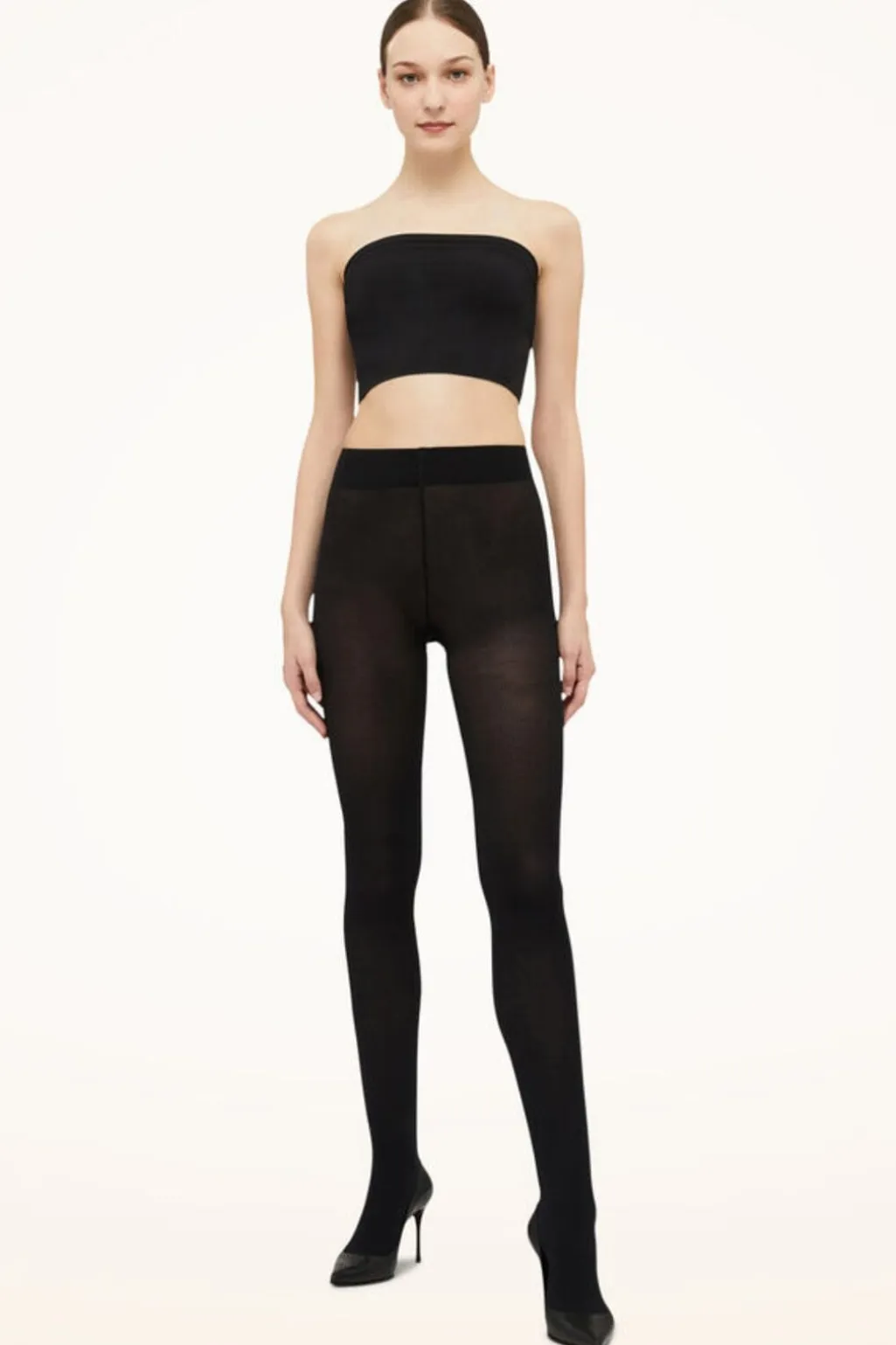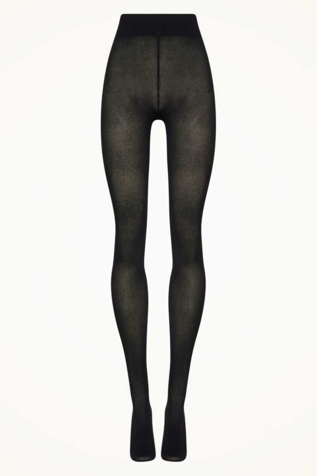 Sorte strømpebukser fra Wolford med ribbet struktur. Strømpebukserne har en blød bomuldsblanding og en tydelig ribbet overflade, der giver et struktureret udtryk.