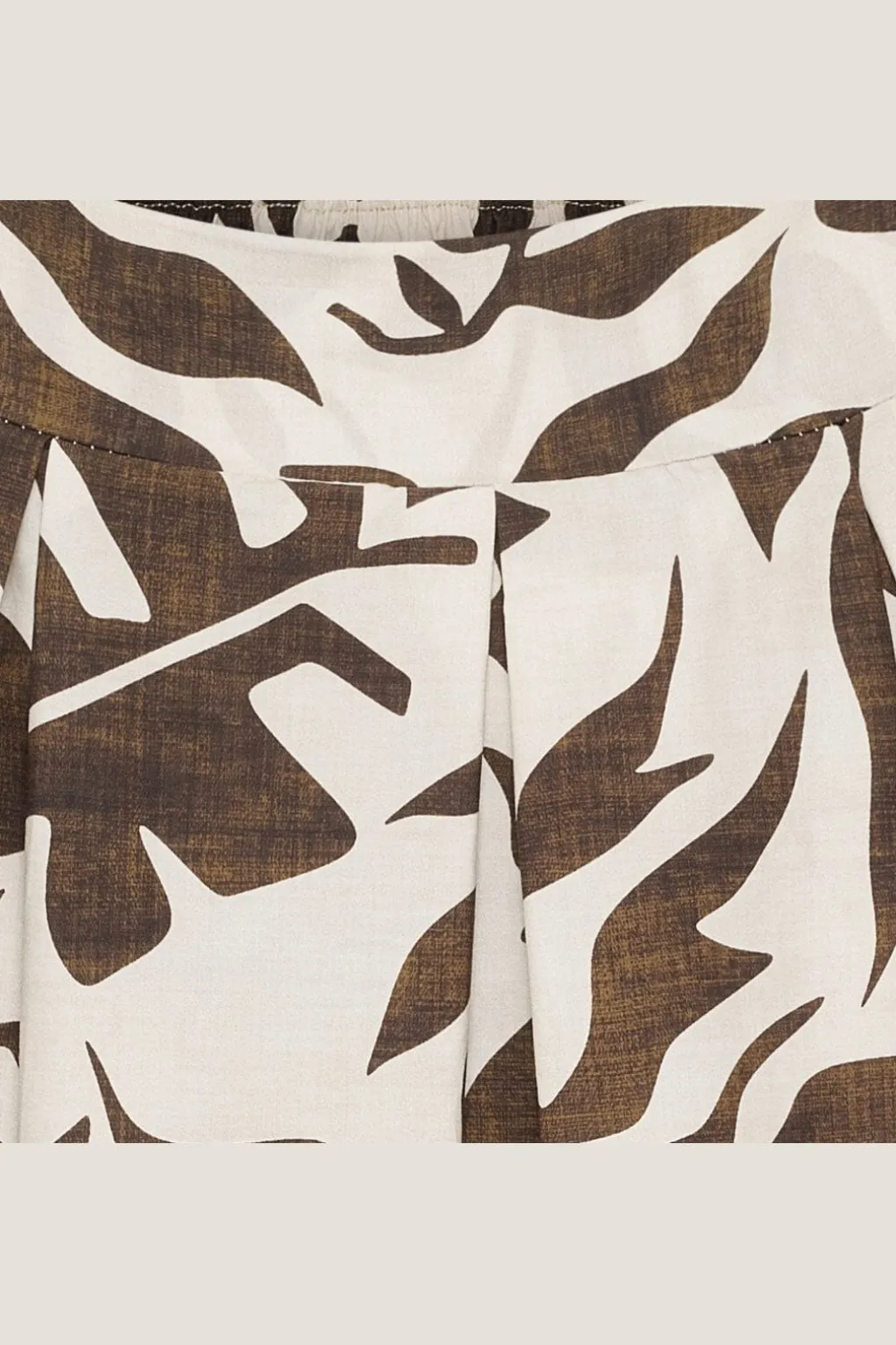 Brun og cremehvid nederdel fra Marta Du Chateau med bladmønster og dekorativ kant forneden. Den har høj talje og løs pasform i kalvelængde.