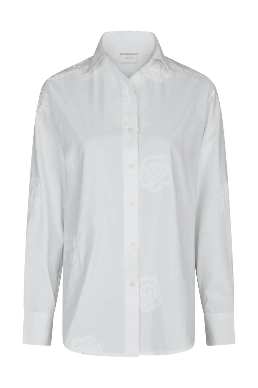 Hvid skjorte fra Neo Noir, lavet af 100 % bomuld. Skjorten har broderede blomster og en oversize pasform.