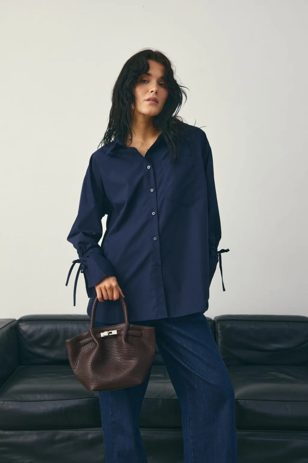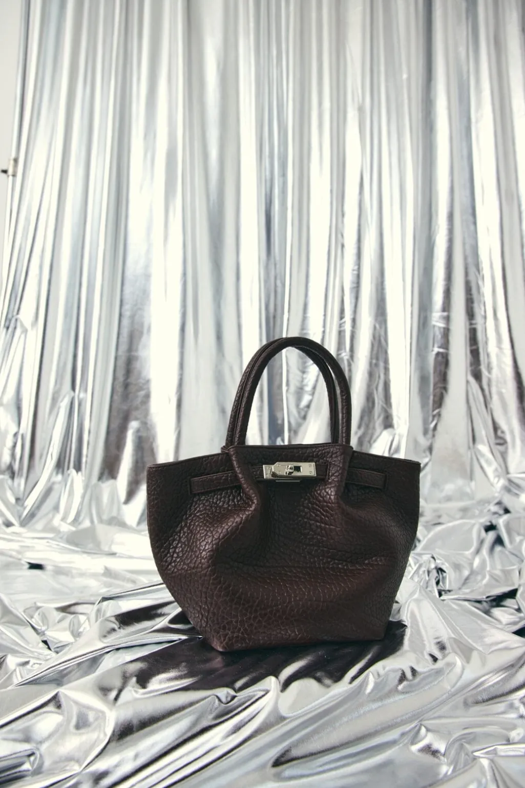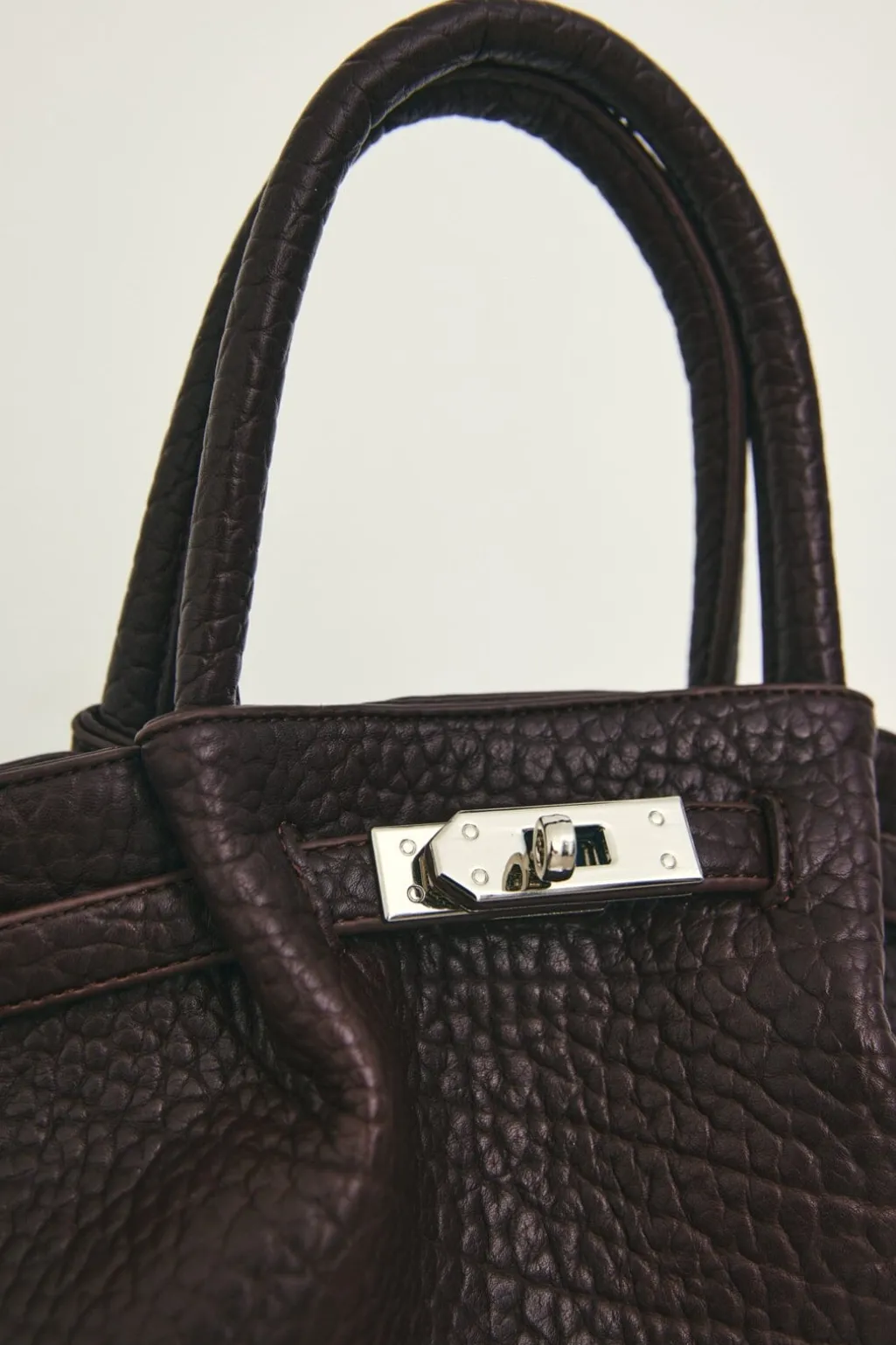 En mellemstor taske fra Noella i en mørkebrun mahognifarve. Tasken har en struktureret overflade og er lavet af polyester.