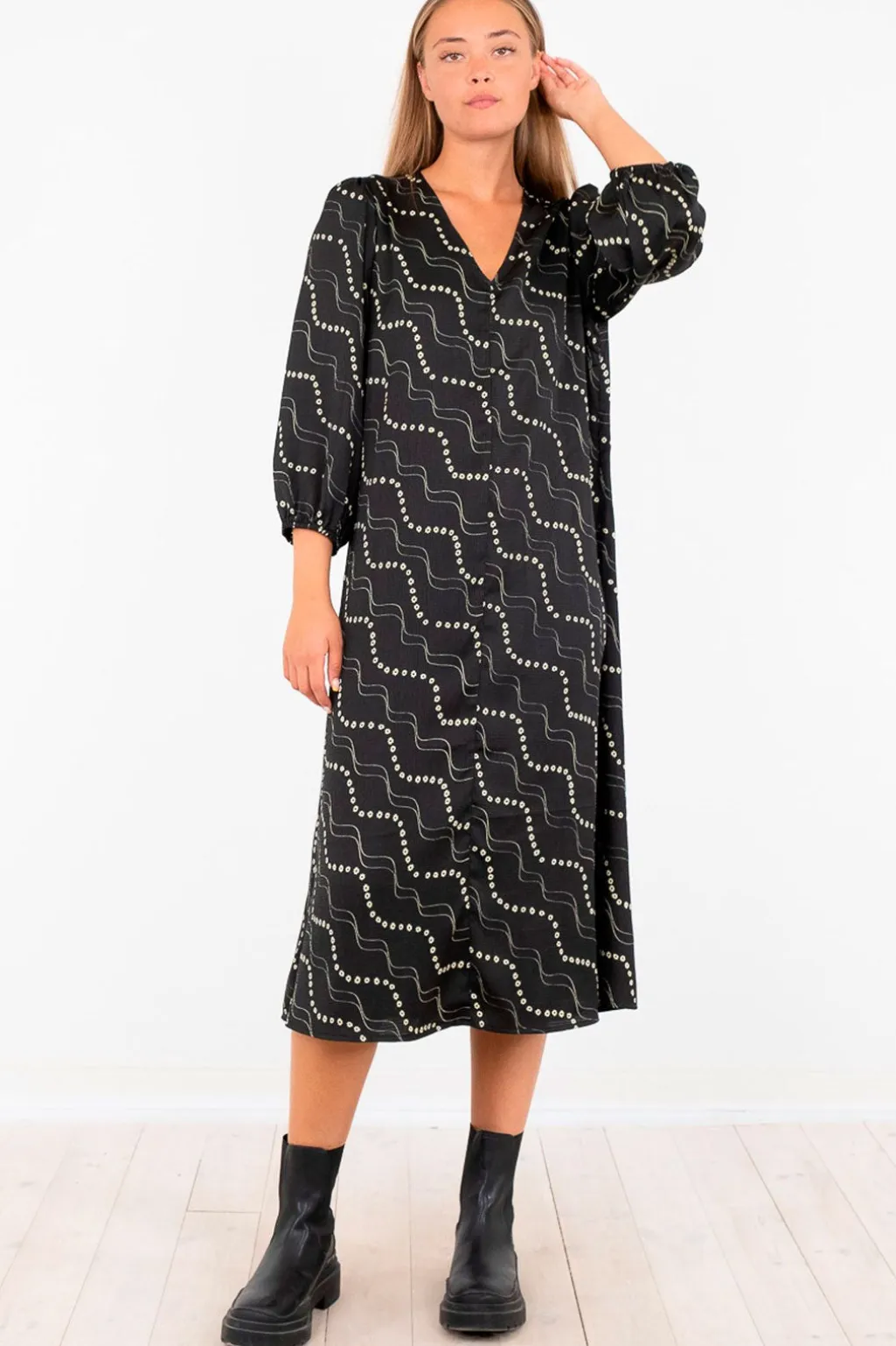Model: Delfina Flower Stripe Dress