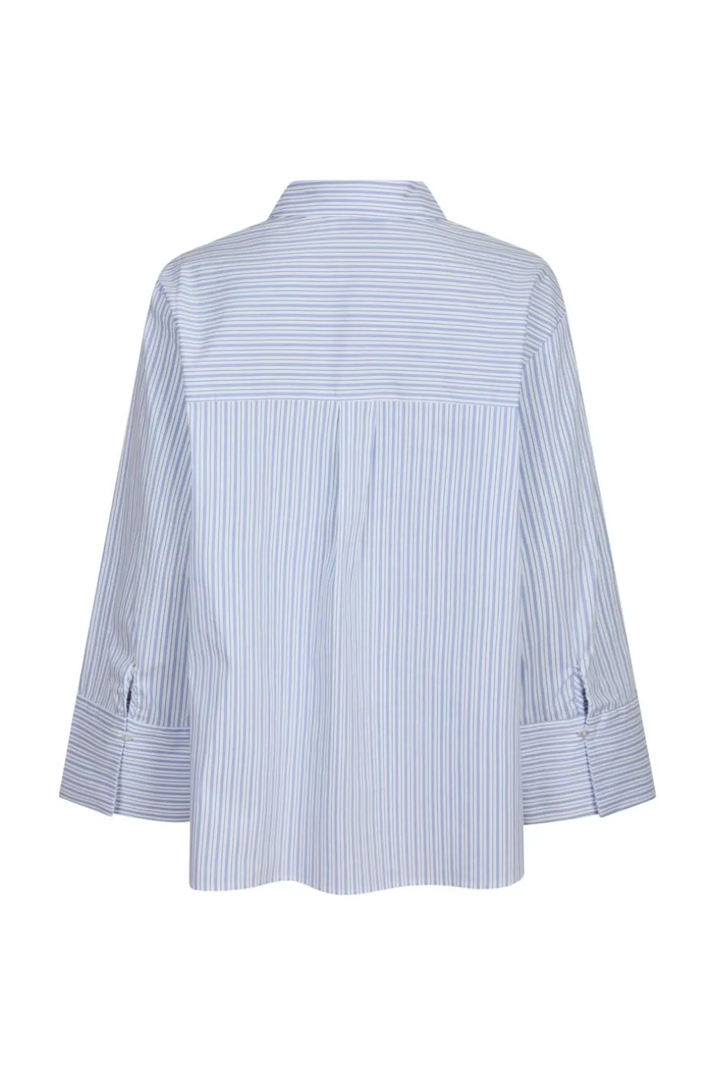 Stribet skjorte fra Neo Noir i lyseblå. Skjorten har en klassisk skjortekrave og lange ærmer med knaplukning foran.