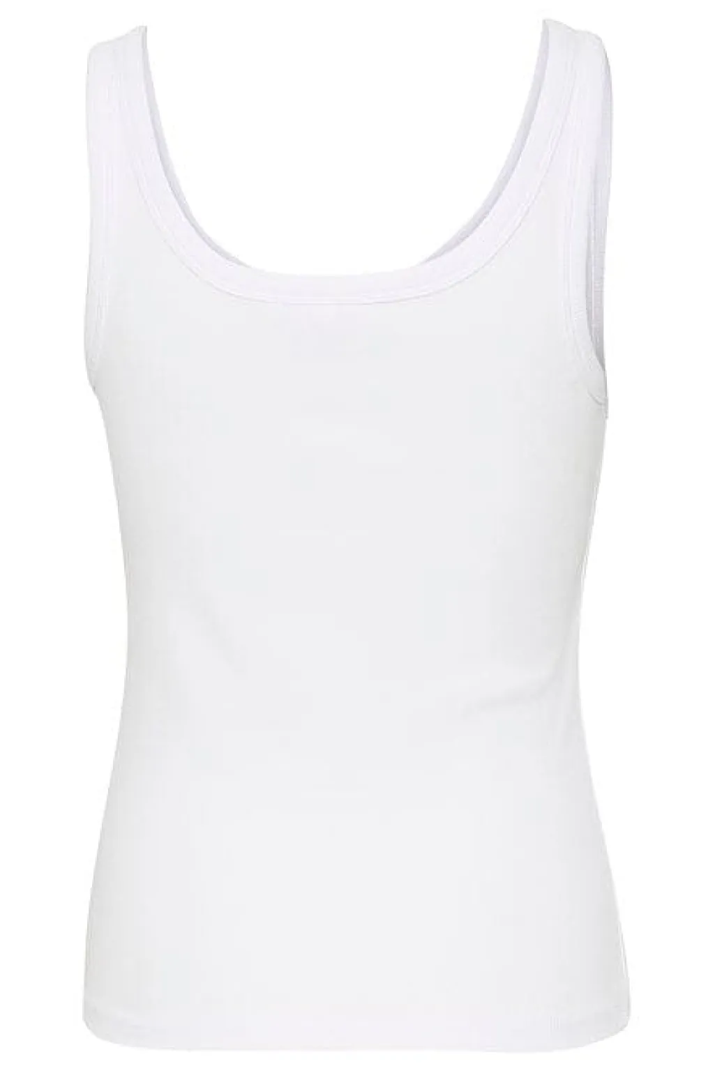 Hvid ærmeløs top fra Gestuz med et diskret sort logo på brystet. Den tætsiddende top har en rund halsudskæring og er lavet af en blød bomuldsblanding.