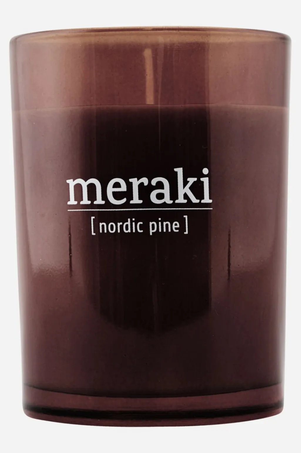 Skab en hyggelig atmosfære med et elegant duftlys. Nordic Pine duftlyset fra Meraki er lavet på olie fra sojabønnen og soder derfor væsentligt mindre end et almindeligt stearinlys. Nyd en skøn duft med lidt kant i det flotte mørke glas, der passer perfekt ind i det moderne hjem. Lyset har en brændetid på 35 timer.