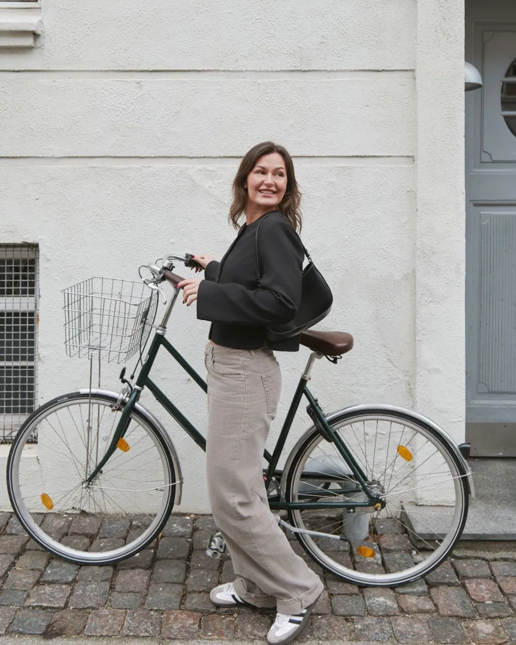 Sort jakke med cropped design. Den har en rund halsudskæring og knaplukning foran. Jakken har en normal pasform og lange ærmer med let udvidelse.
